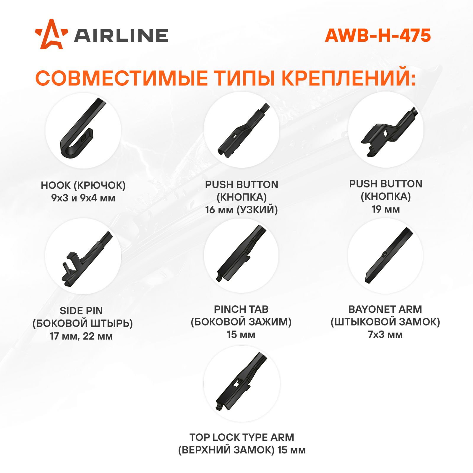 Щетка стеклоочистителя гибрид 480мм (19") 3 адаптера (AWB-H-475)