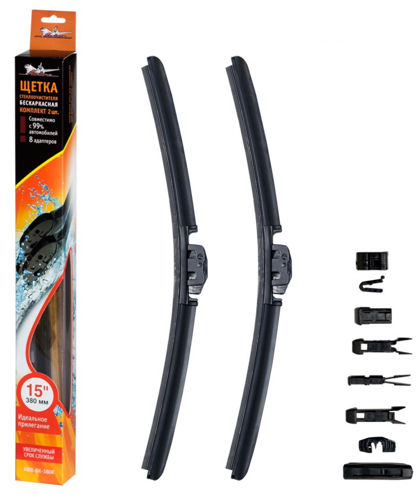 Щетка стеклоочистителя бескаркас 380мм (15") 2 шт. 10 адаптеров (AWB-BK-380K)