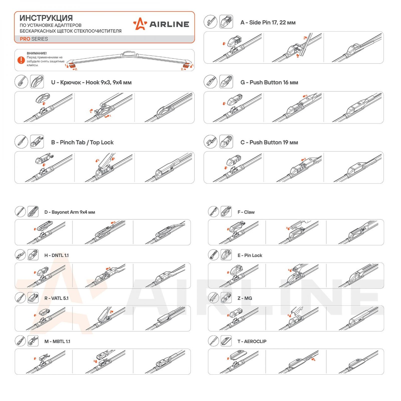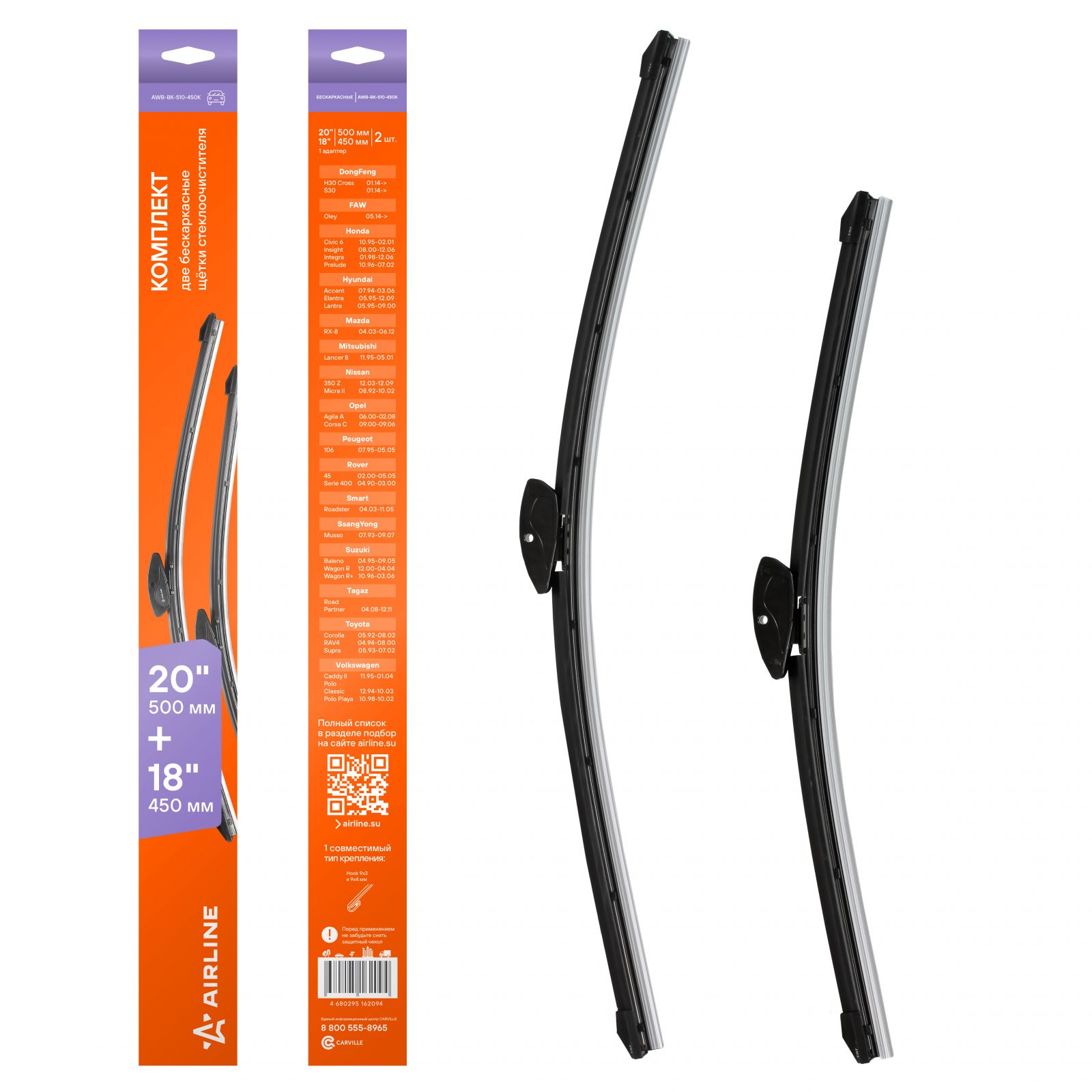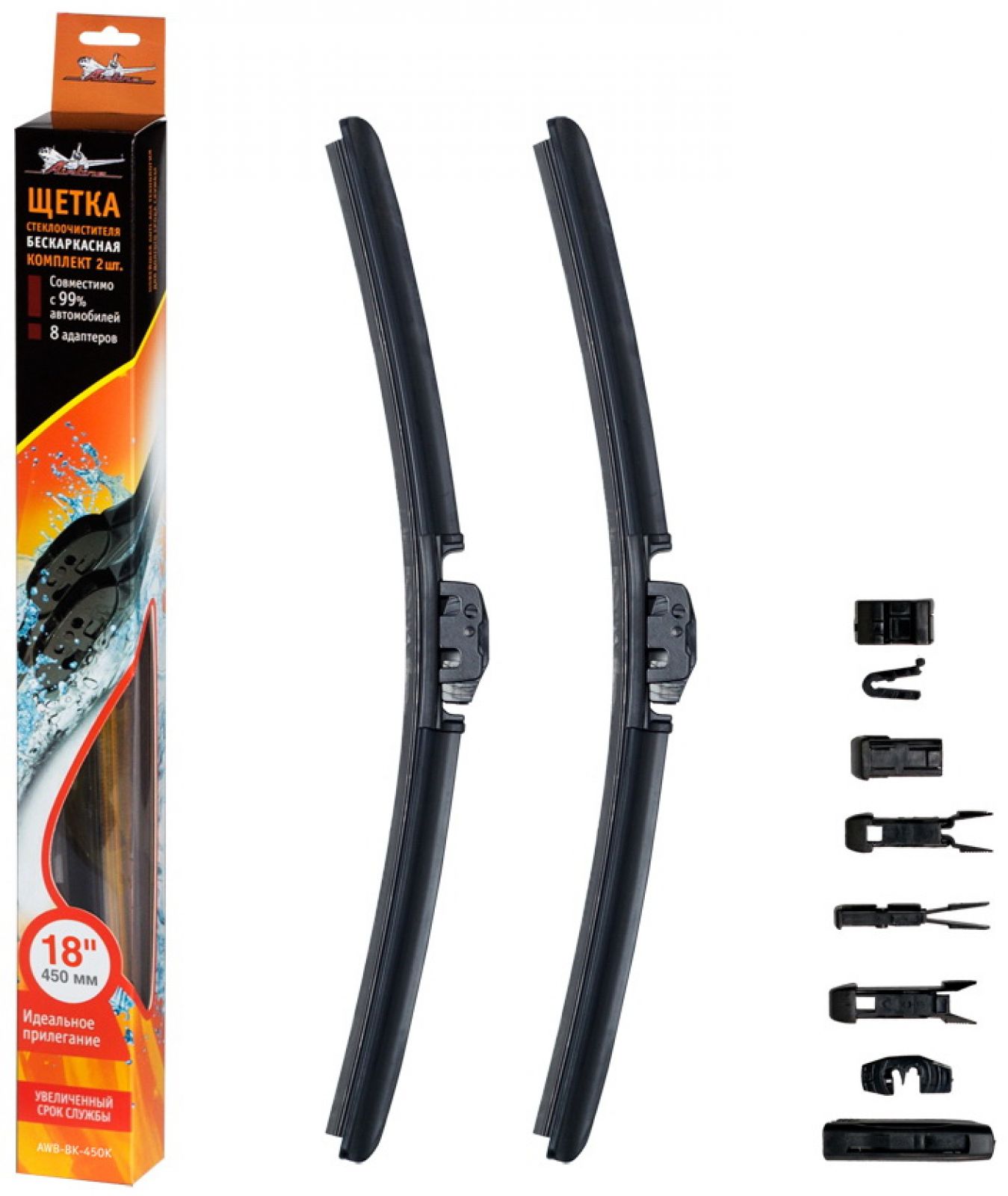 Щетка стеклоочистителя бескаркас 450мм (18") 2 шт. 10 адаптеров (AWB-BK-450K)
