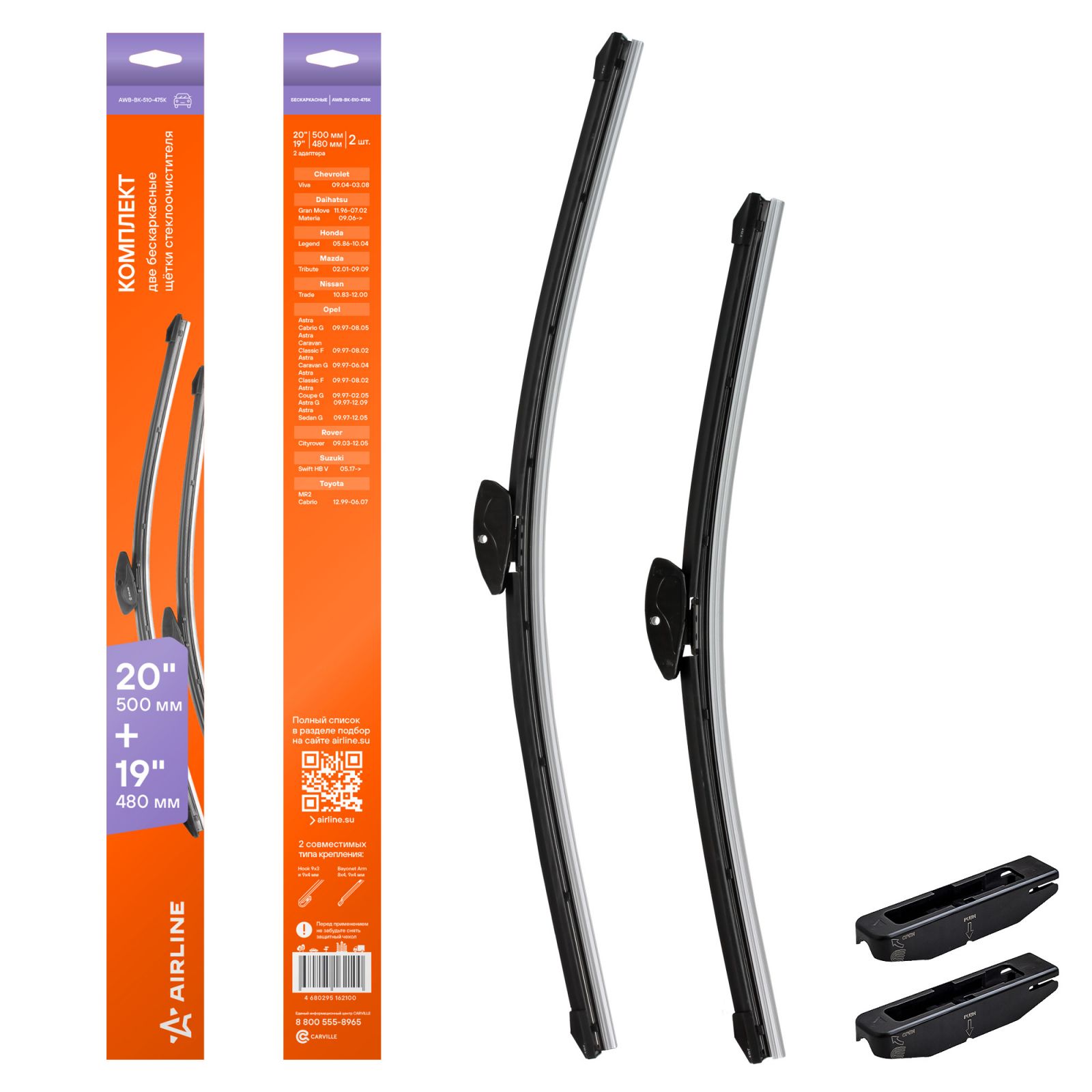 Щетки стеклооч бескаркас универс компл. (2шт.) 500/480мм (20"/19") 2 адптр (AWB-BK-510-475K)
