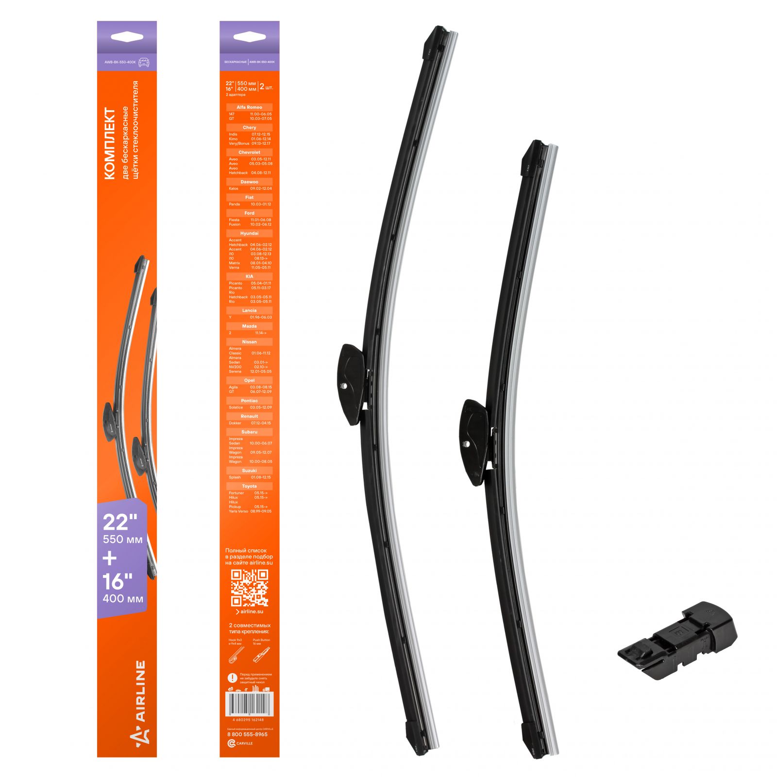 Щетки стеклооч бескаркас универс компл. (2шт.) 550/400мм (22"/16") 2 адптр (AWB-BK-550-400K)