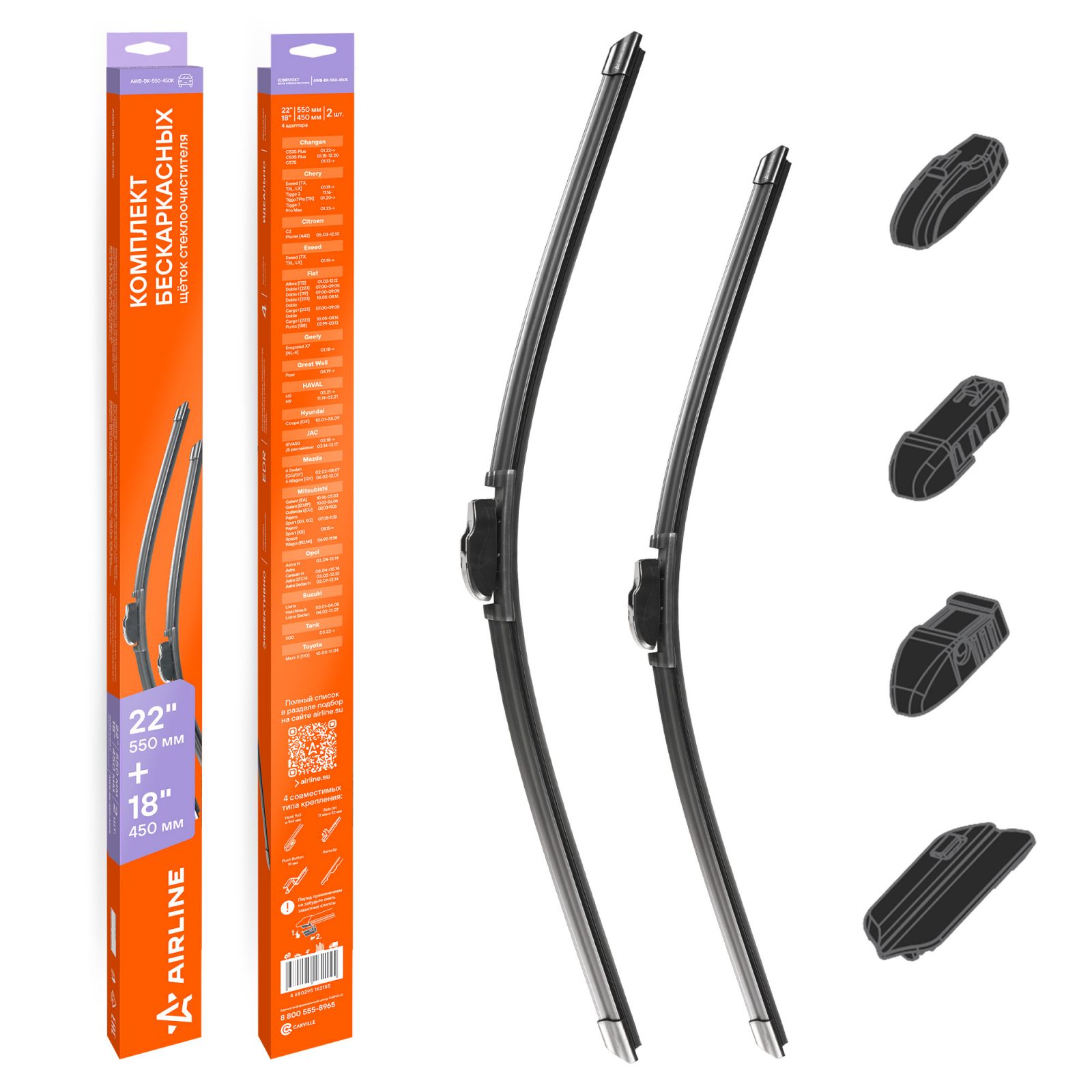 Щетки стеклооч бескаркас универс компл. (2шт.) 550/450мм (22"/18") 4 адптр (AWB-BK-550-450K)