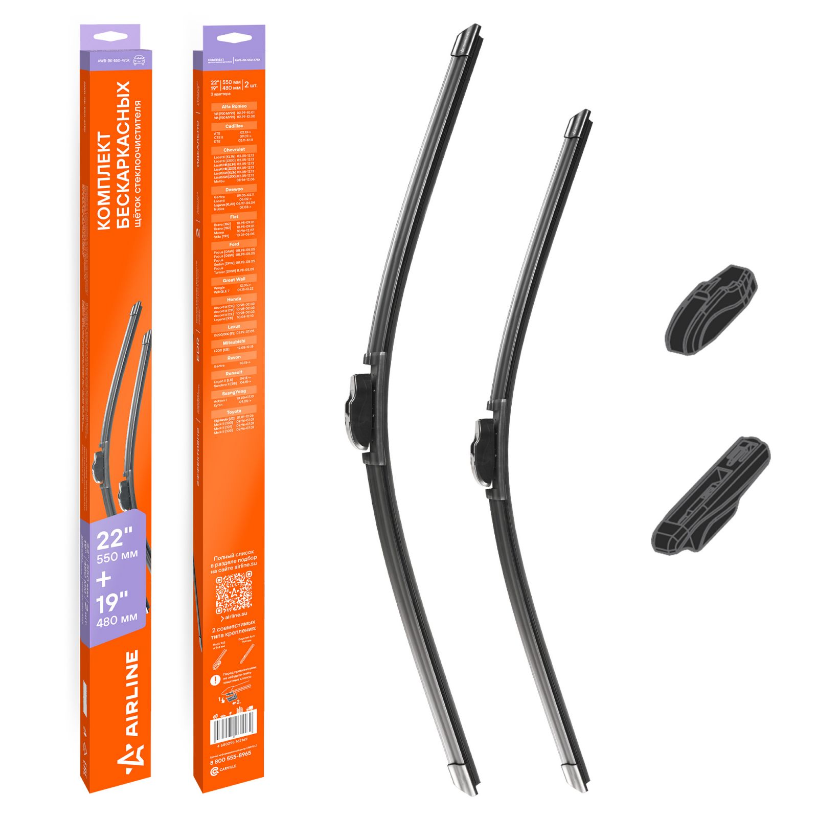 Щетки стеклооч бескаркас универс компл. (2шт.) 550/480мм (22"/19") 2 адптр (AWB-BK-550-475K)
