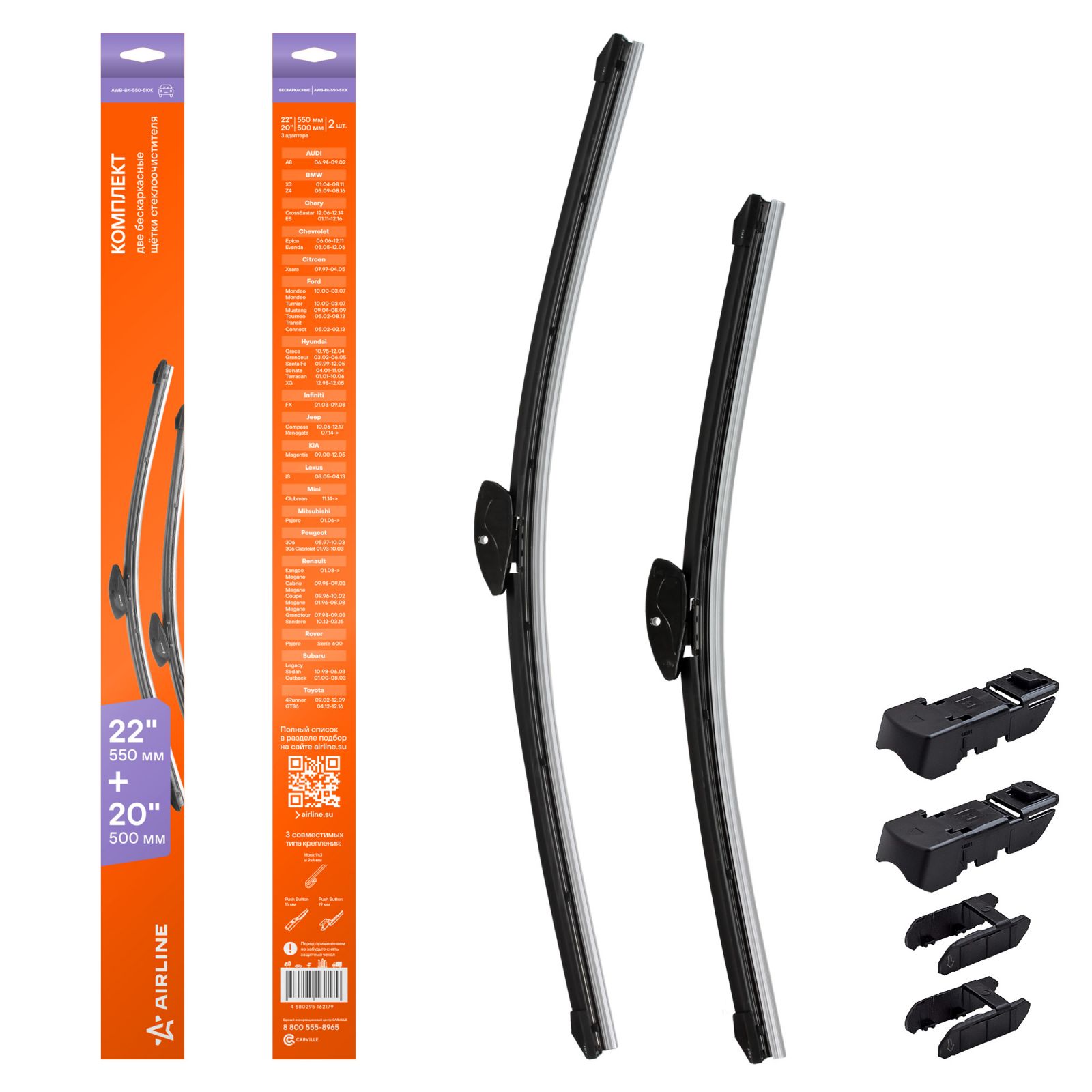 Щетки стеклооч бескаркас универс компл. (2шт.) 550/500мм (22"/20") 3 адптр (AWB-BK-550-510K)