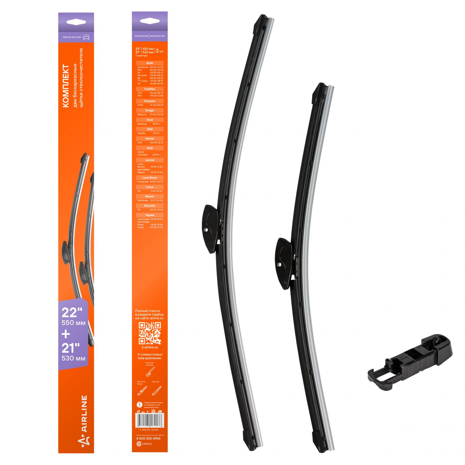 Щетки стеклооч бескаркас универс компл. (2шт.) 550/530мм (22"/21") 2 адптр (AWB-BK-550-530K)