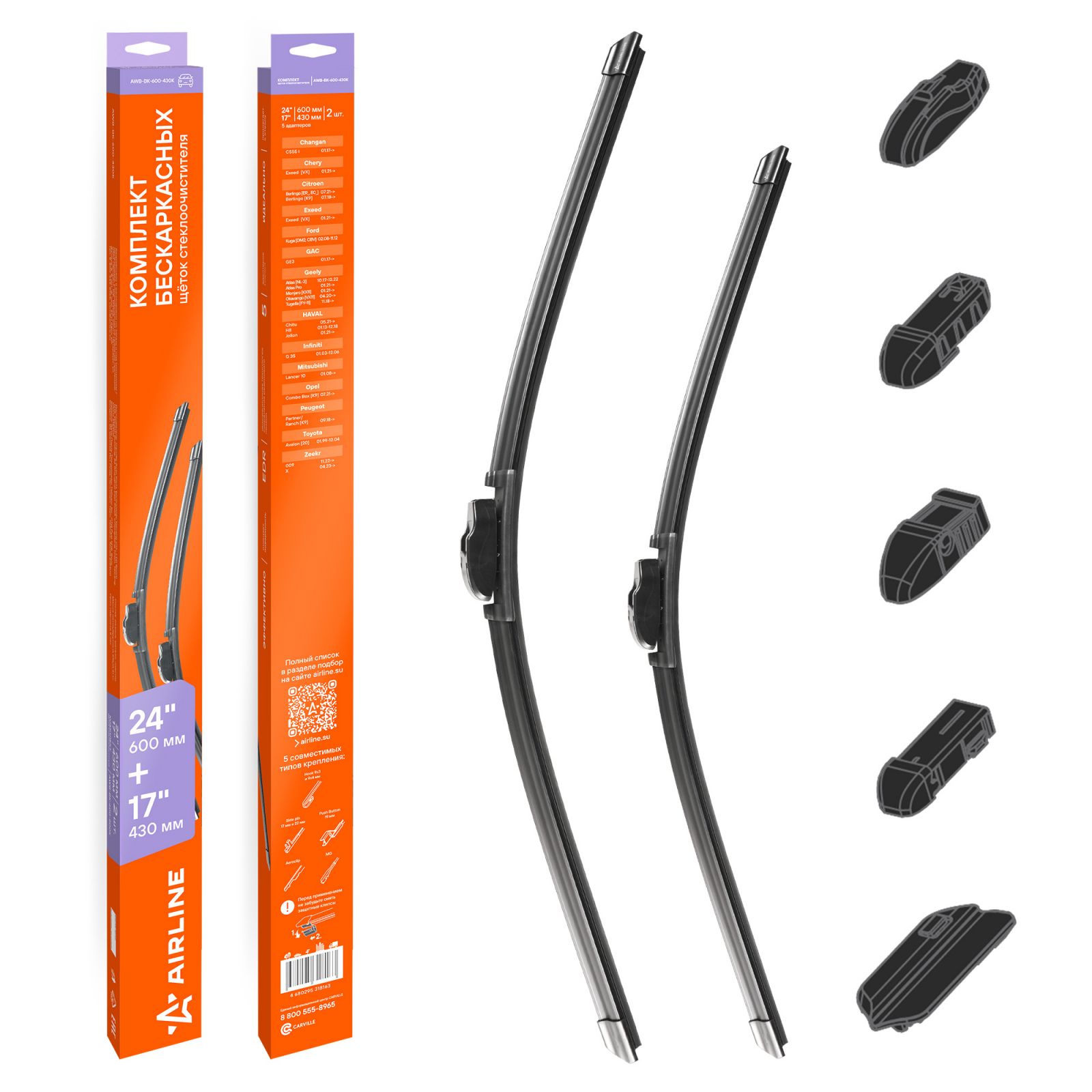 Щетки стеклооч бескаркас универс компл. (2шт.) 600/430мм (24"/17") 5 адптр (AWB-BK-600-430K)