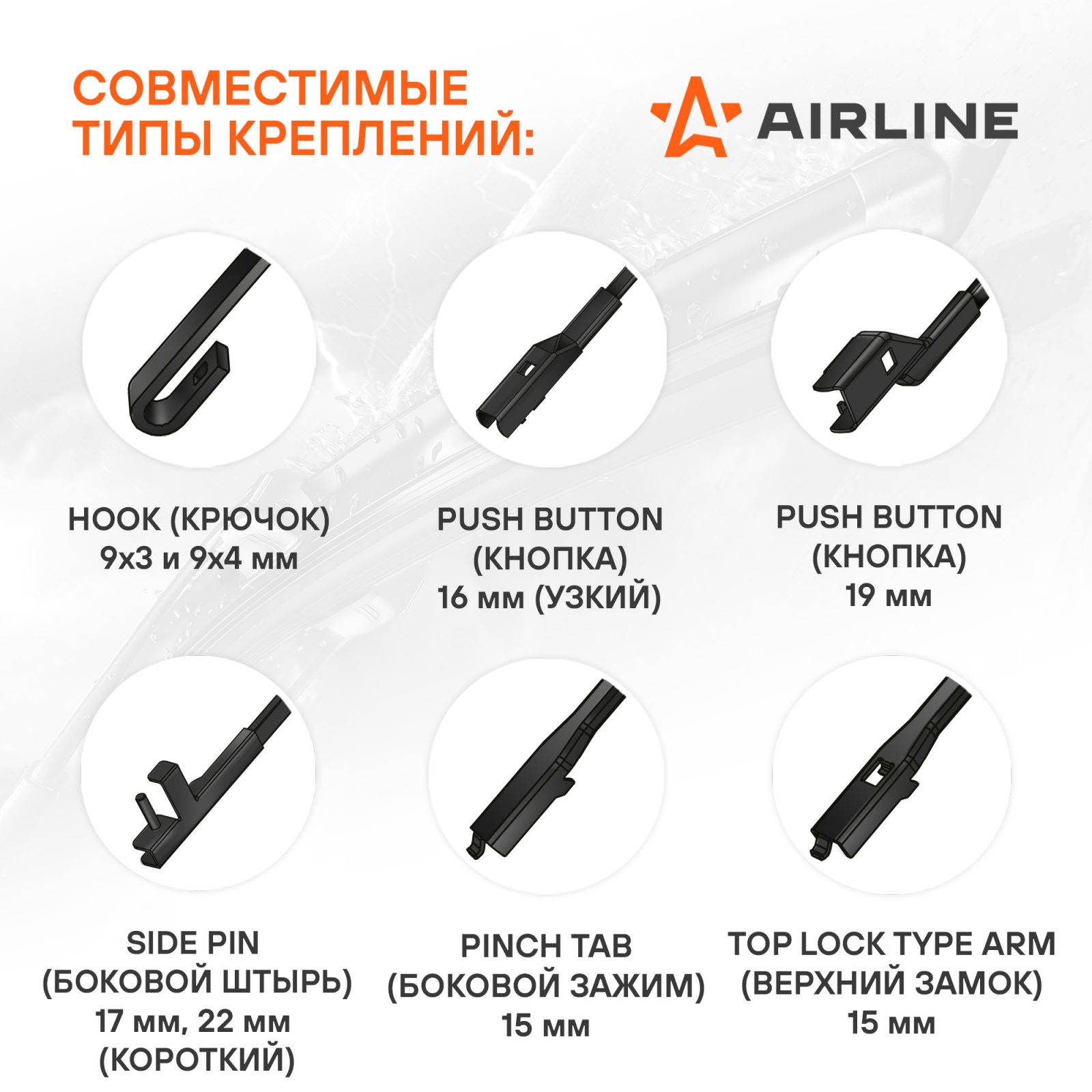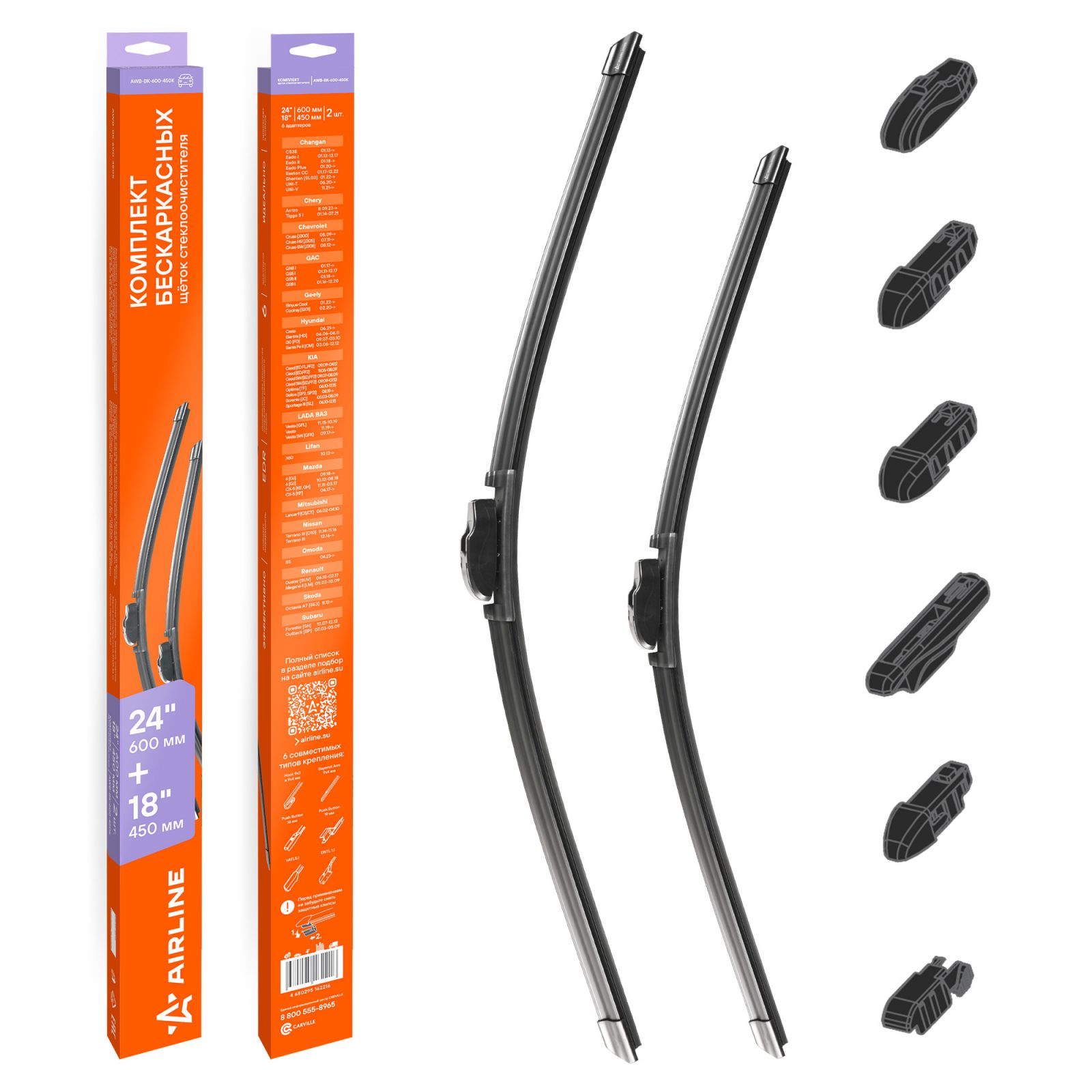 Щетки стеклооч бескаркас универс компл. (2шт.) 600/450мм (24"/18") 6 адптр (AWB-BK-600-450K)