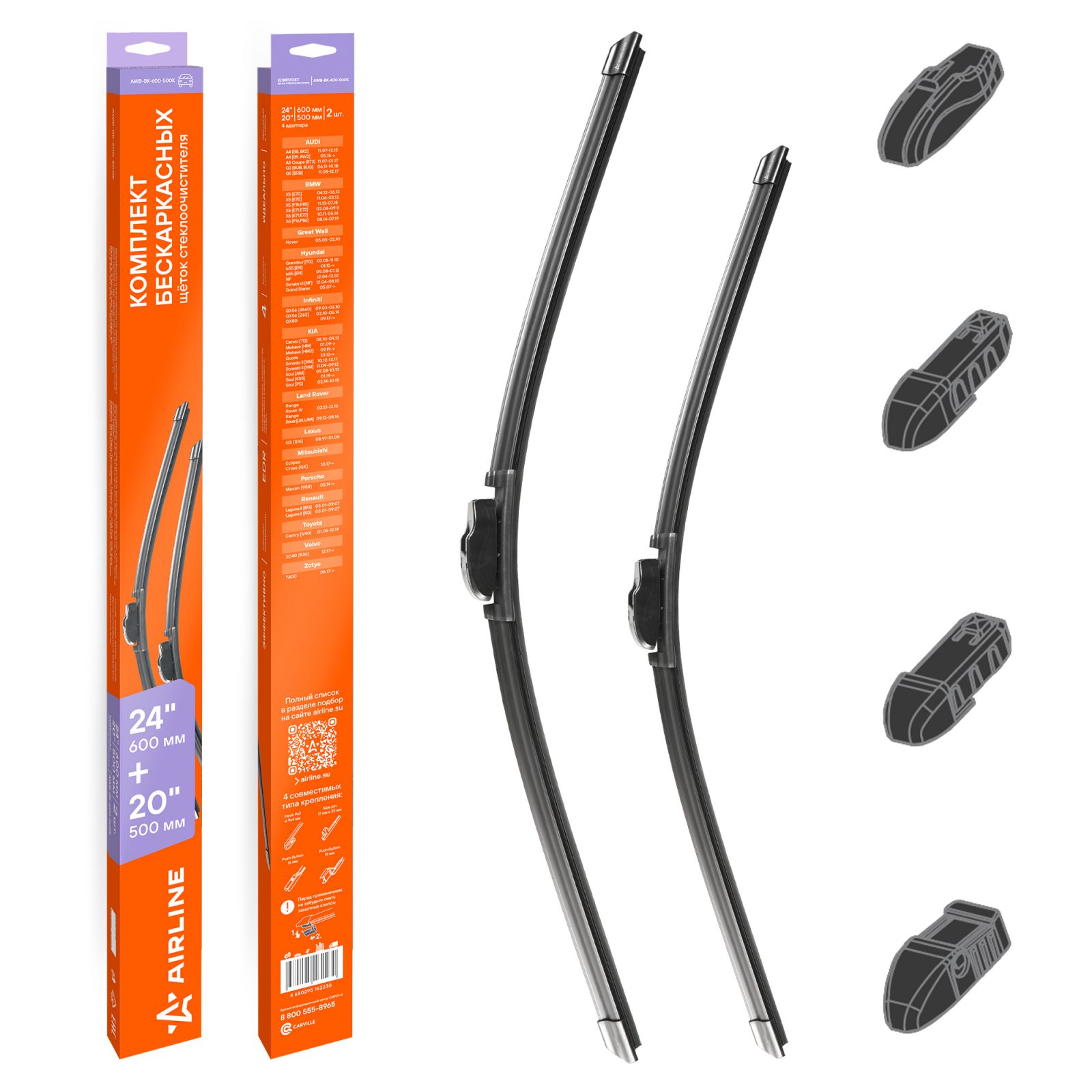 Щетки стеклооч бескаркас универс компл. (2шт.) 600/500мм (24"/20") 4 адптр (AWB-BK-600-500K)