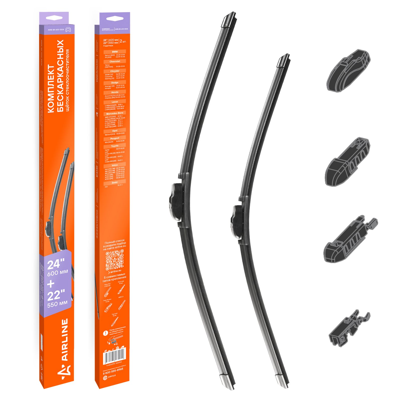 Щетки стеклооч бескаркас универс компл. (2шт.) 600/550мм (24"/22") 4 адптр (AWB-BK-600-550K)