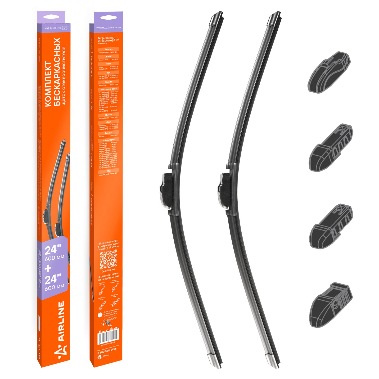 Щетки стеклооч бескаркас универс компл. (2шт.) 600/600мм (24"/24") 4 адптр (AWB-BK-600-600K)