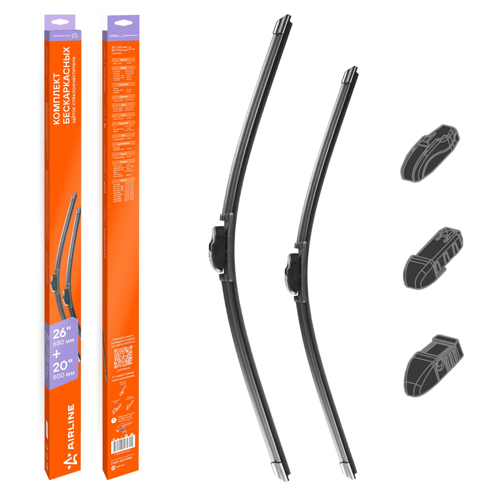 Щетки стеклооч бескаркас универс компл. (2шт.) 650/500мм (26"/20") 3 адптр (AWB-BK-650-500K)