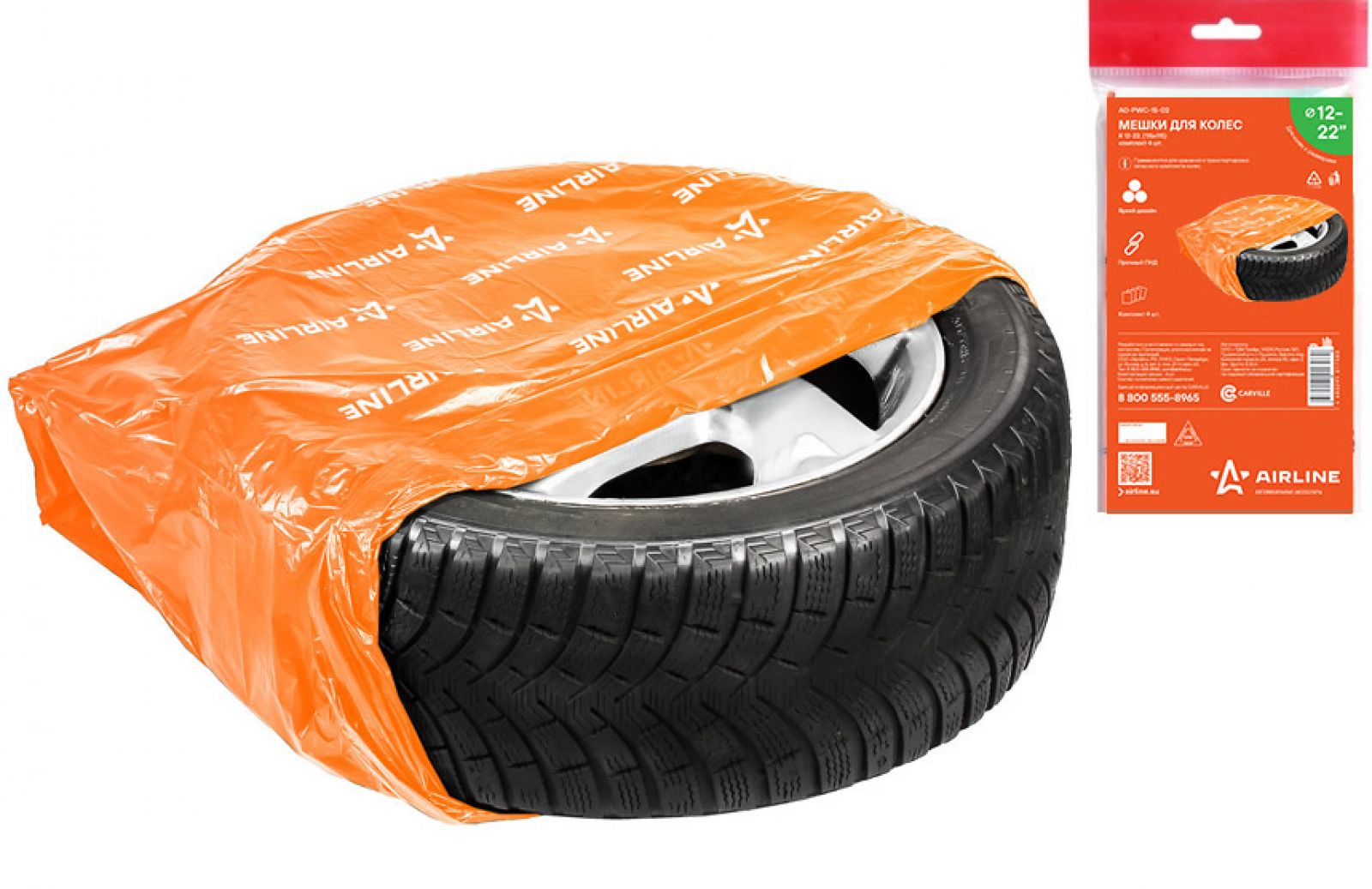 Пакеты для колес R12-22, 4 шт в пакете, 115х115 см, 18 мкм, оранж. (AO-PWC-15-02)