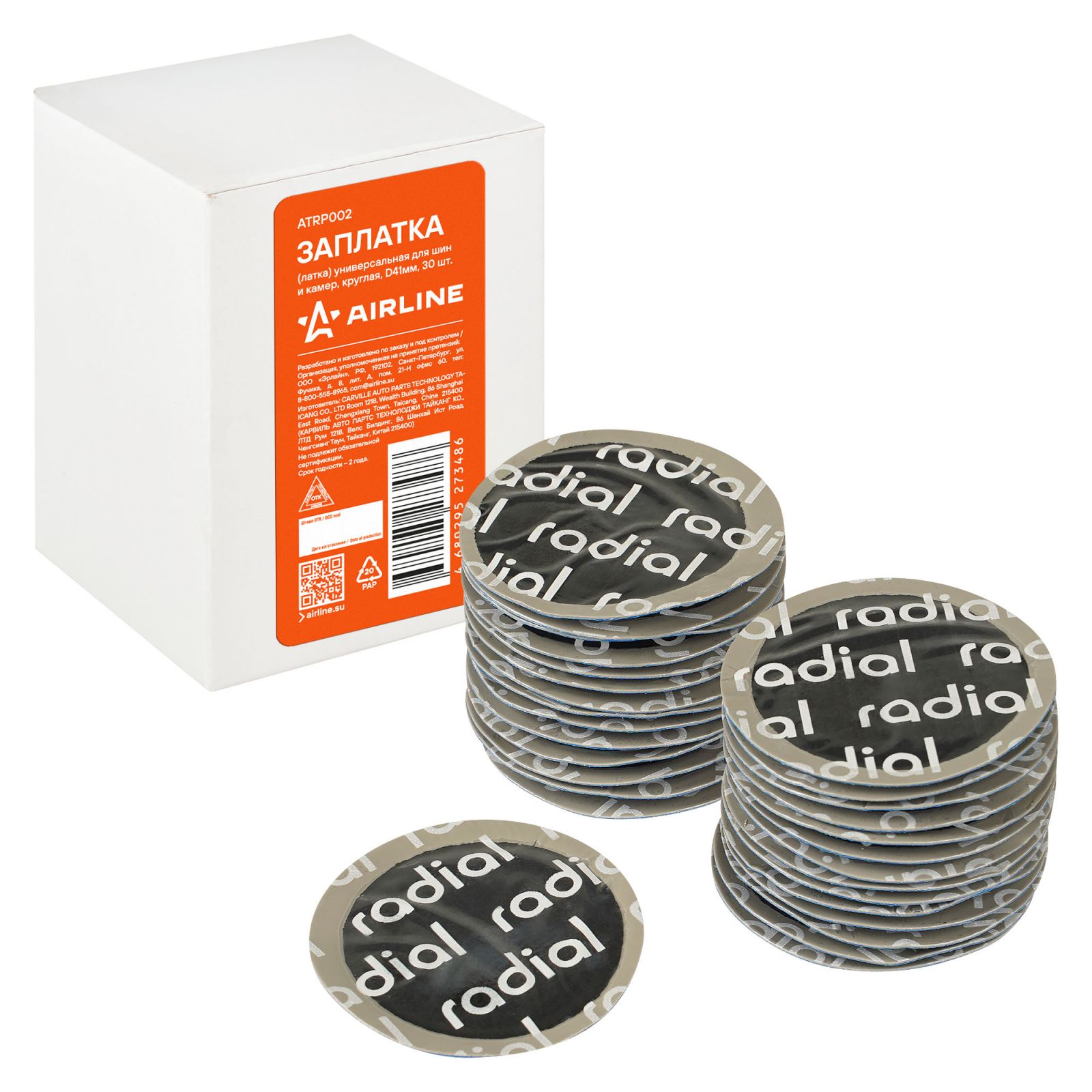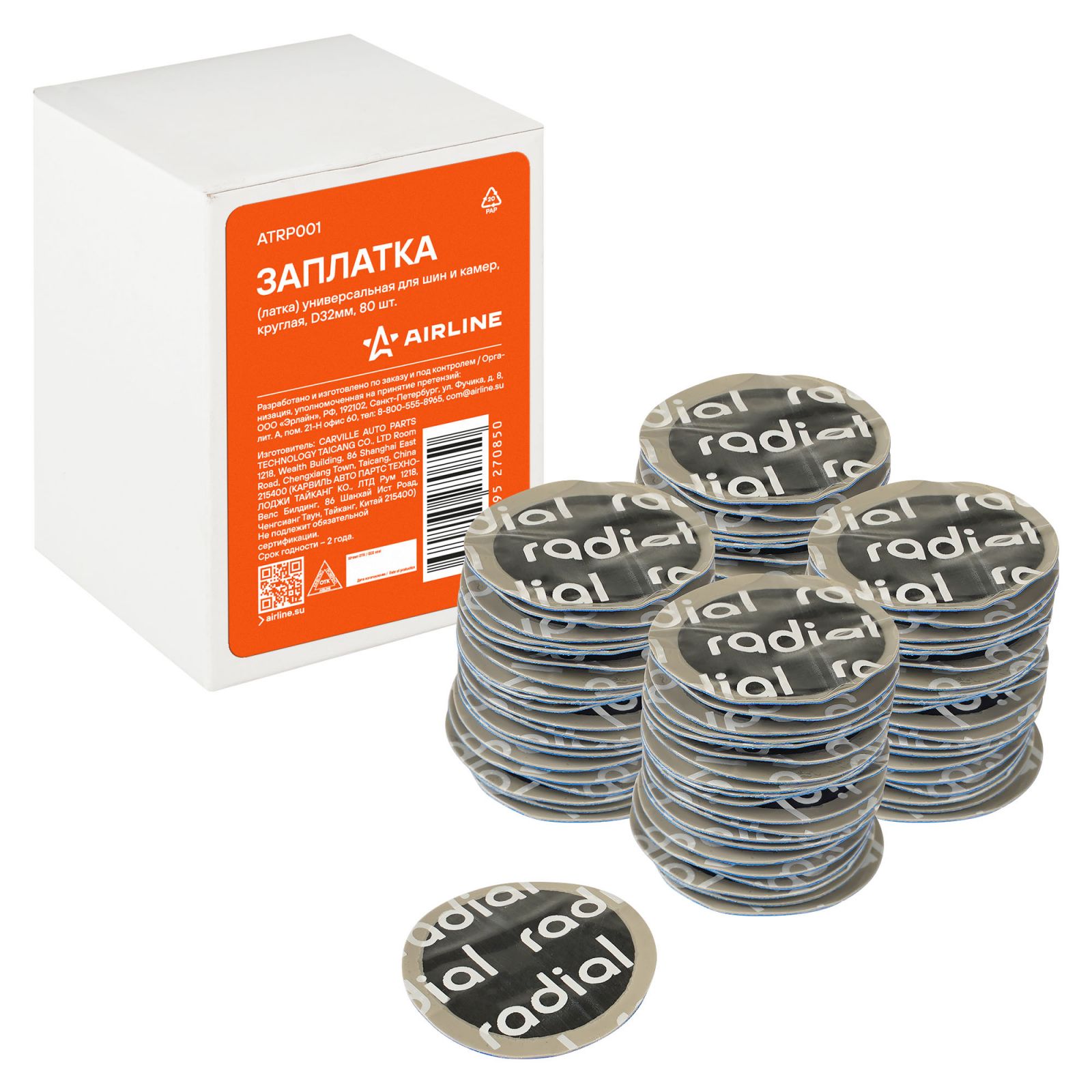 Заплата (латка) универсальная для шин и камер, круглая, D32мм, 80 шт. (ATRP001)