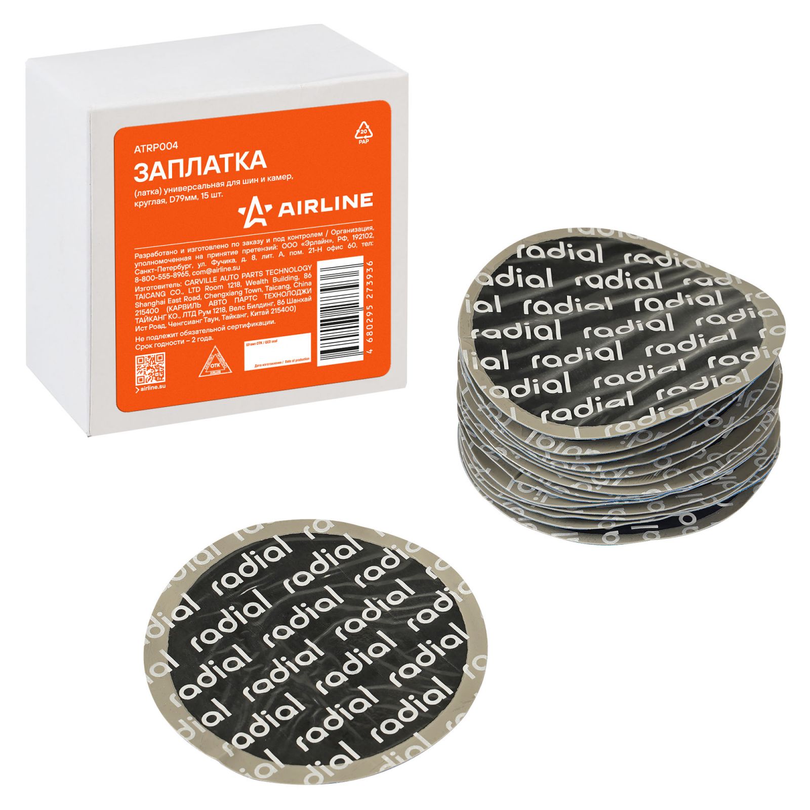 Заплата (латка) универсальная для шин и камер, круглая, D79мм, 15 шт. (ATRP004)
