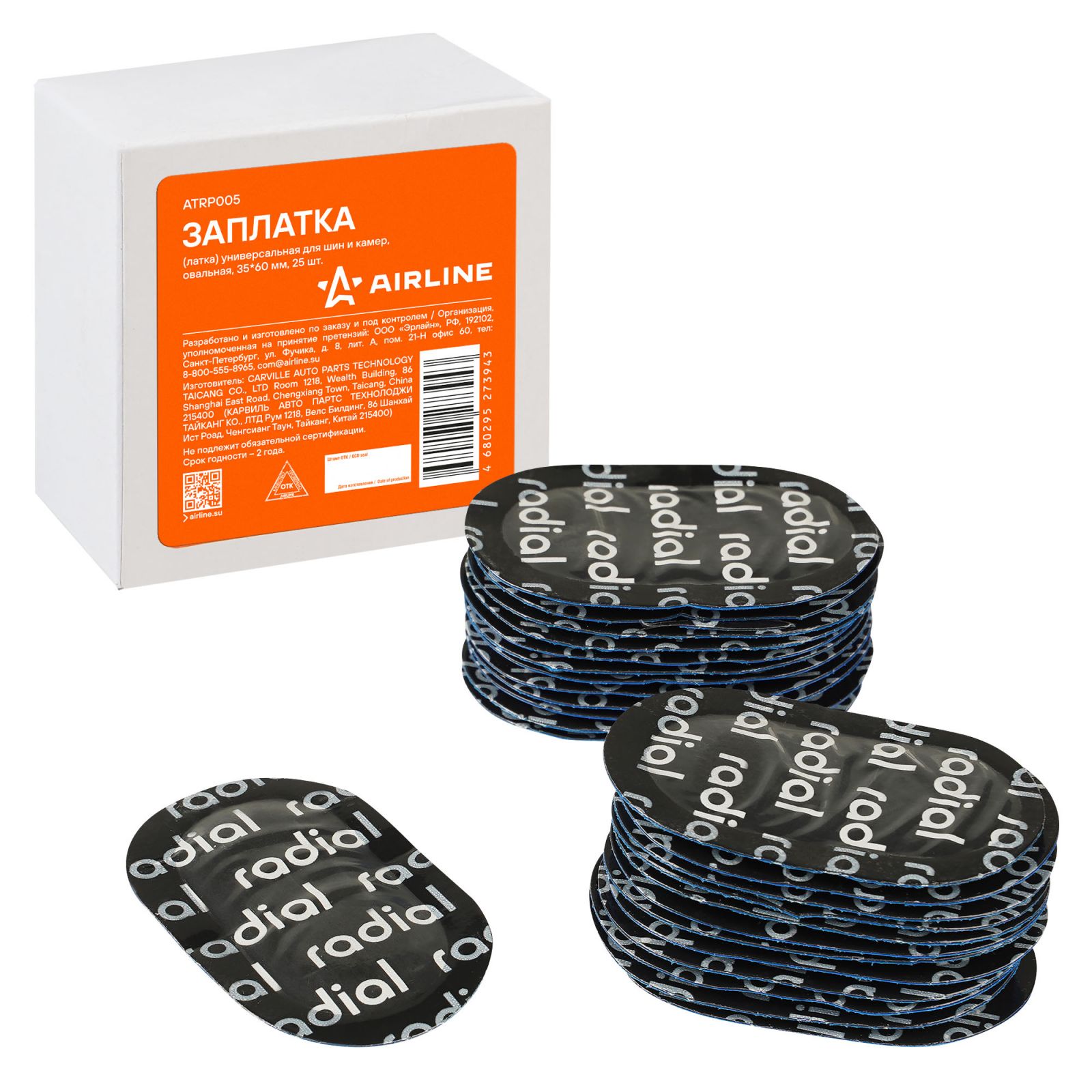 Заплата (латка) универсальная для шин и камер, овальная, 35*60 мм, 25 шт. (ATRP005)