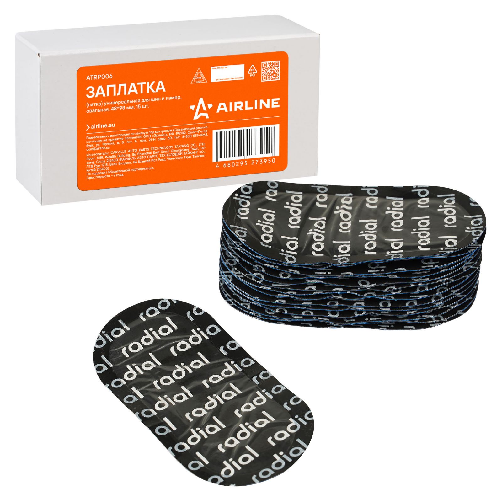 Заплата (латка) универсальная для шин и камер, овальная, 48*98 мм, 15 шт. (ATRP006)