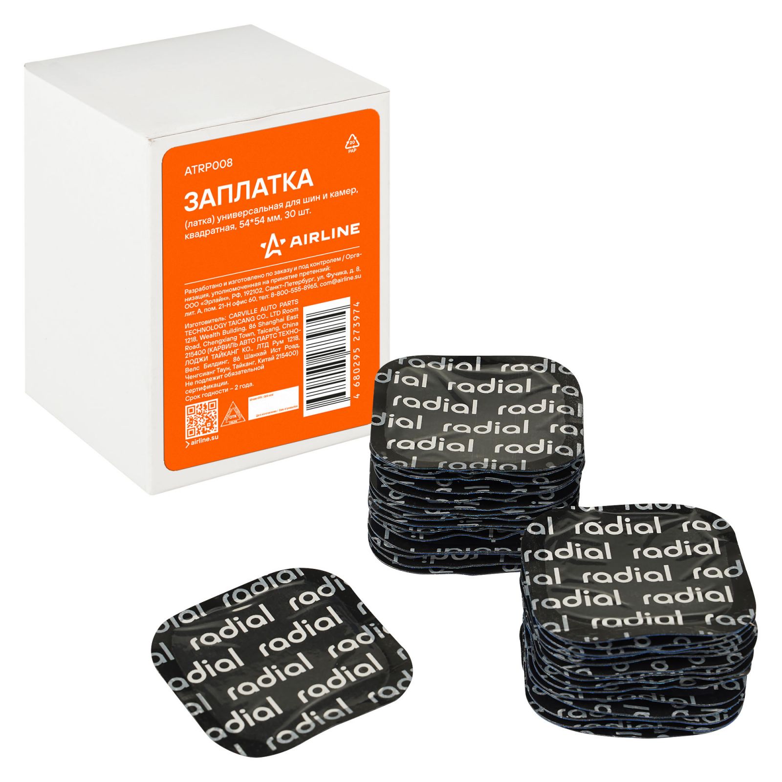 Заплата (латка) универсальная для шин и камер, квадратная, 54*54 мм, 30 шт. (ATRP008)