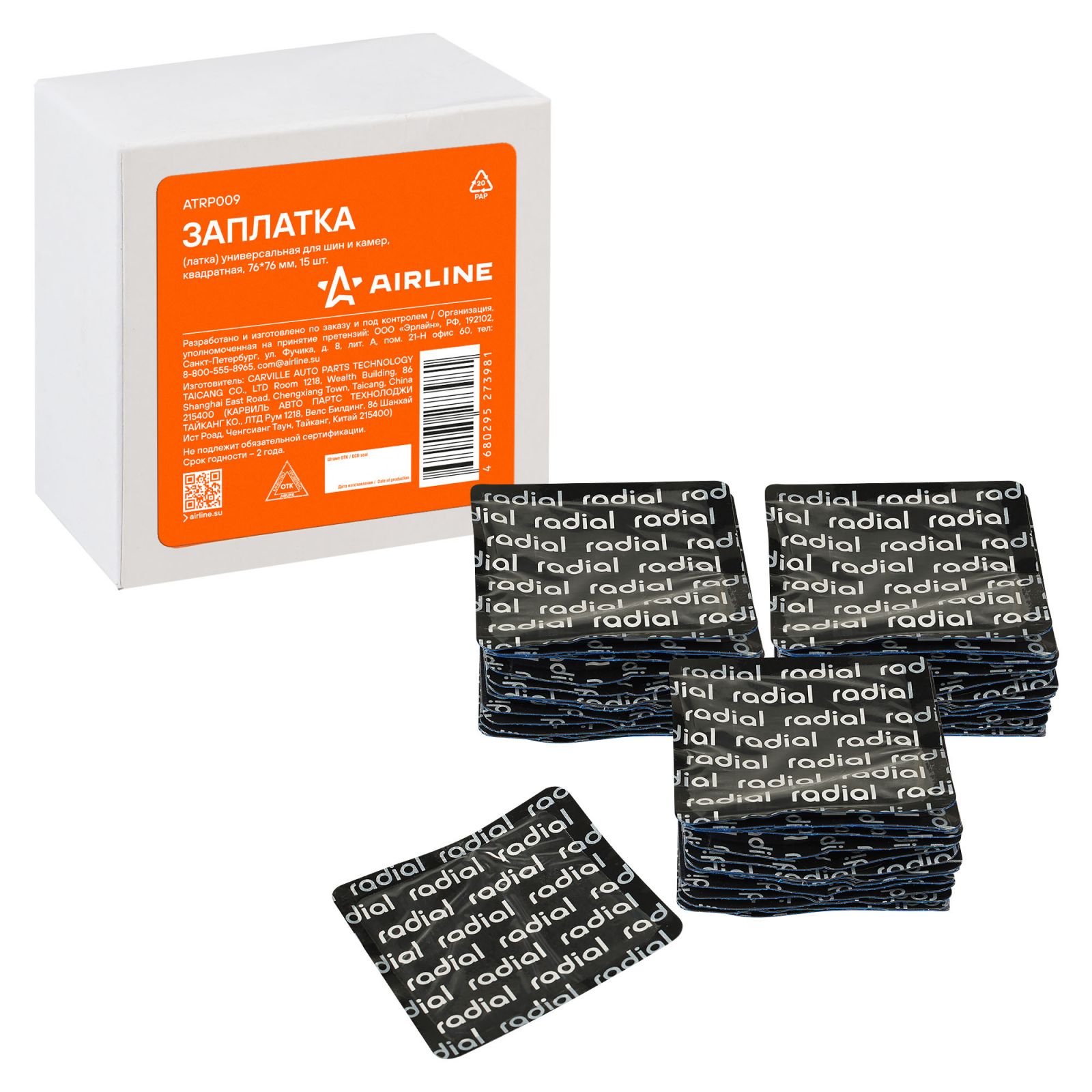Заплата (латка) универсальная для шин и камер, квадратная, 76*76 мм, 15 шт. (ATRP009)