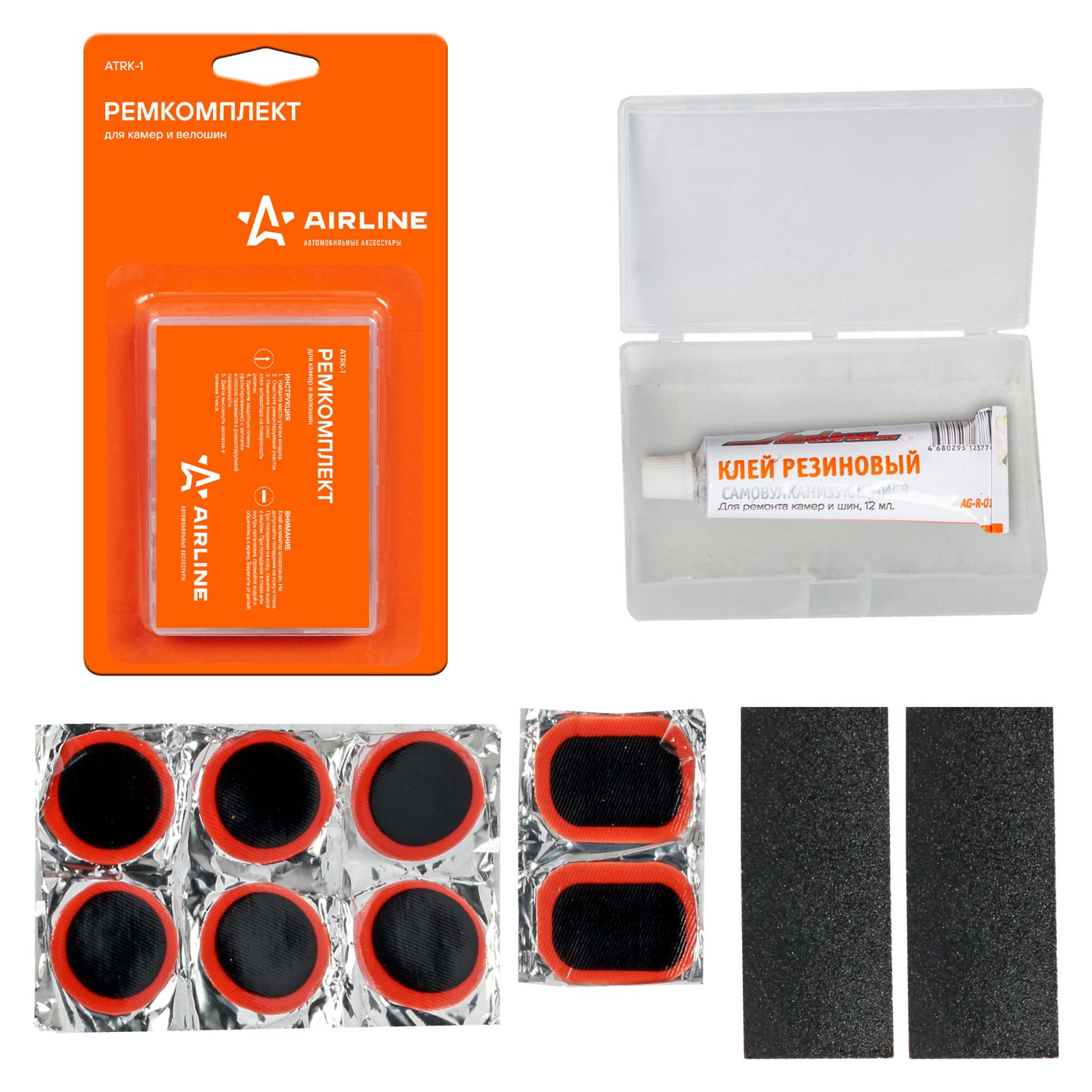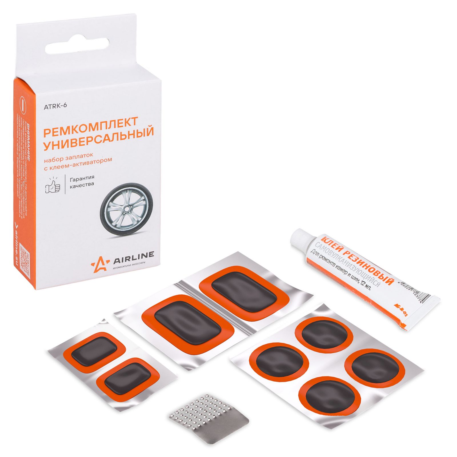 Ремкомплект для камер (заплатки 25x25, 52x32, 35x24, н/ж бумага, клей-активатор) (ATRK-6)