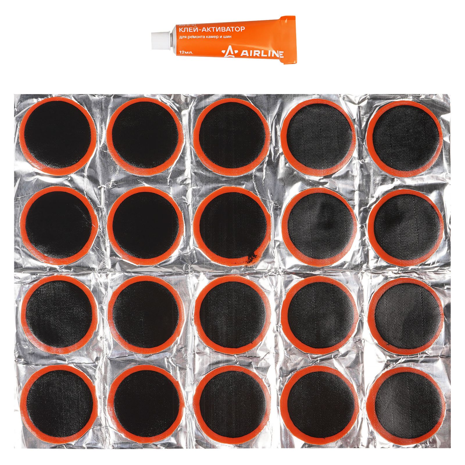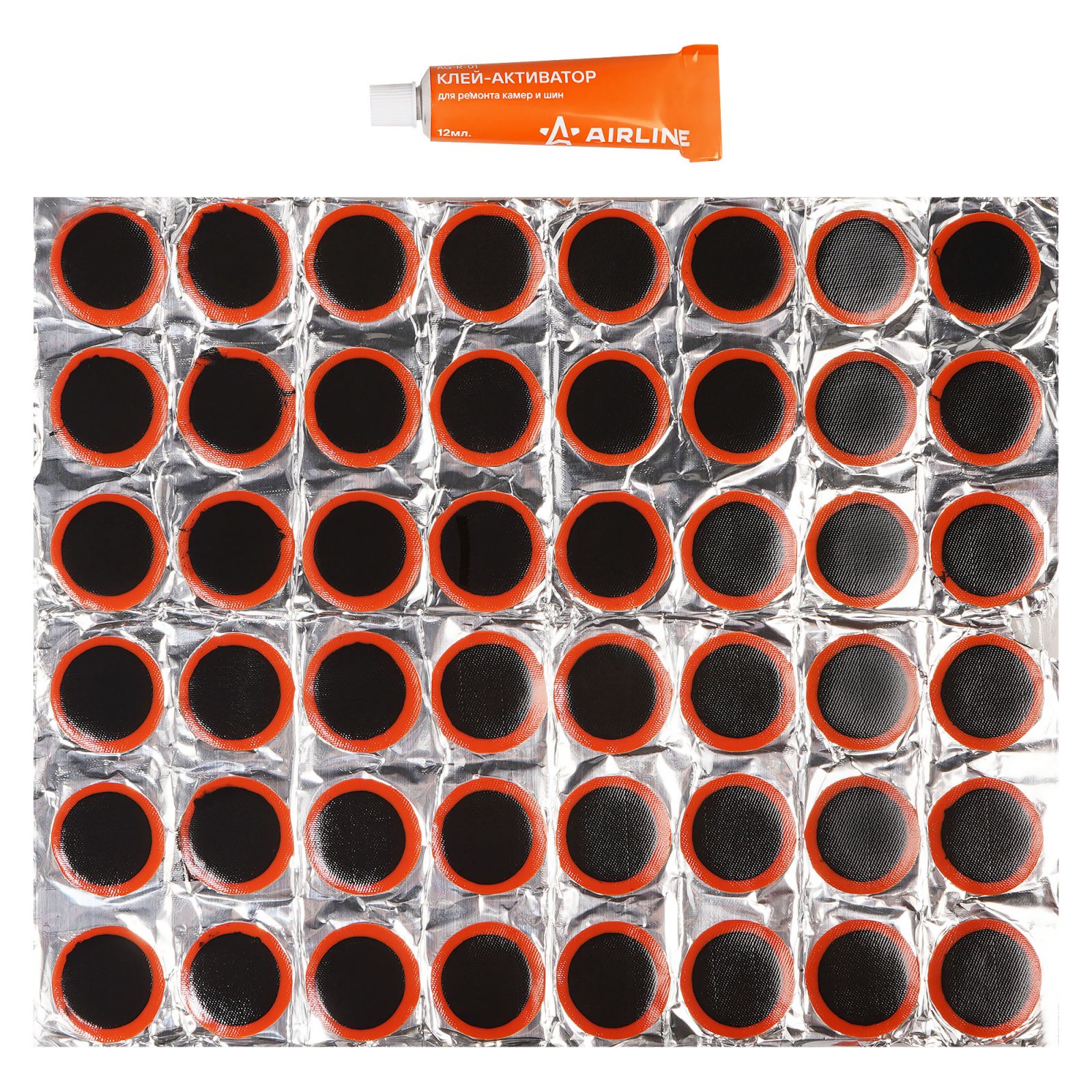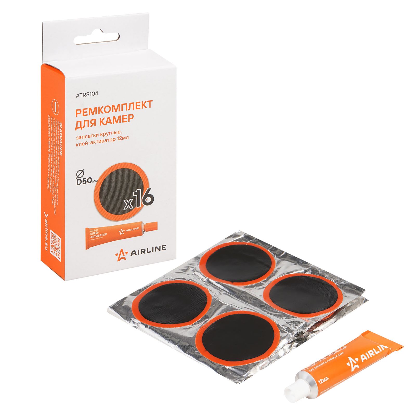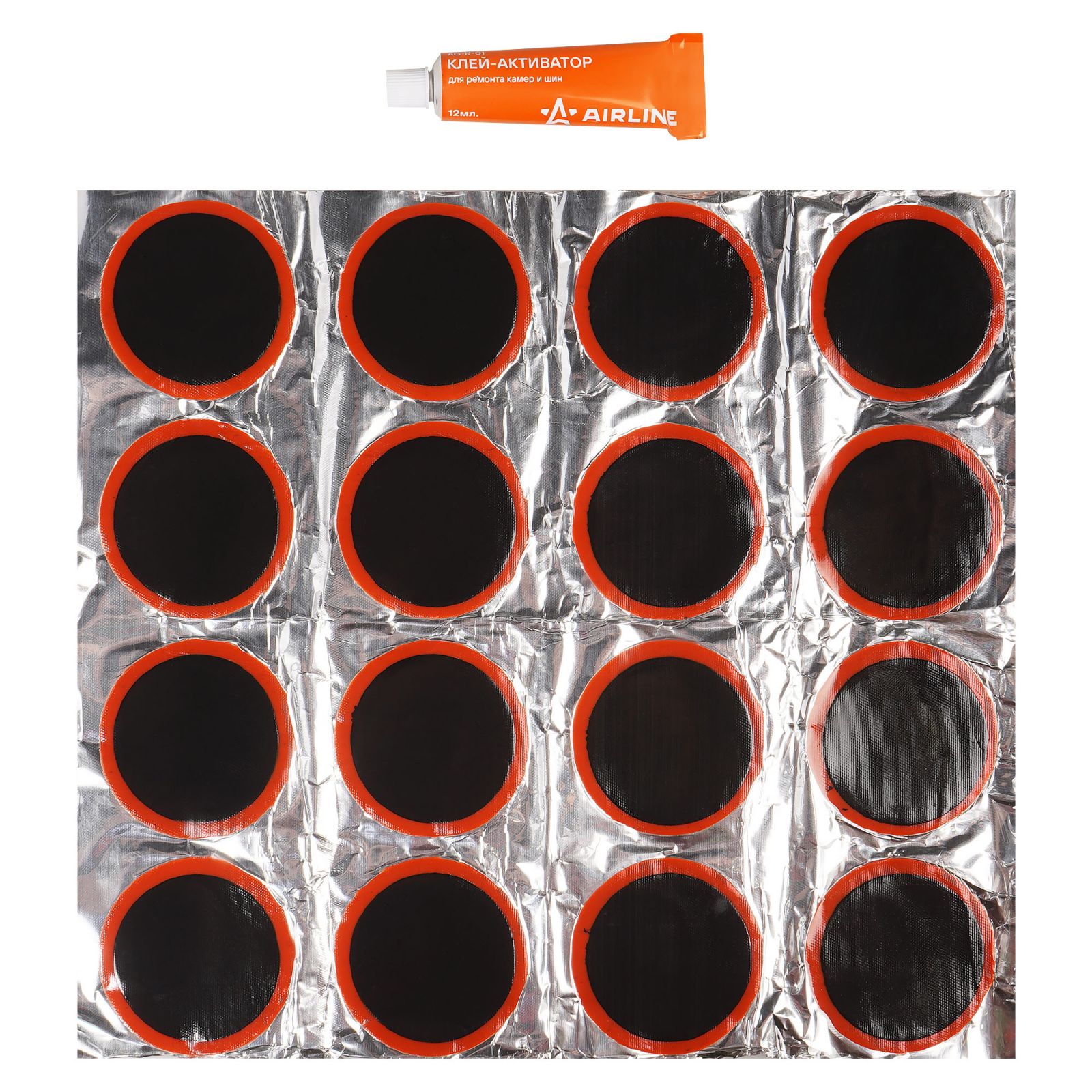 Ремкомплект для камер, заплатки круглые D50 мм - 16 шт., клей-активатор 12мл (ATRS104)