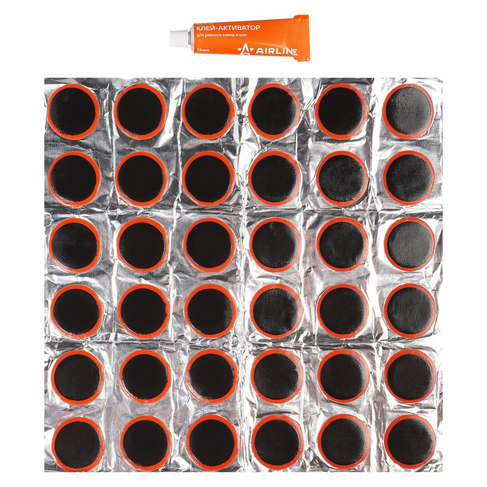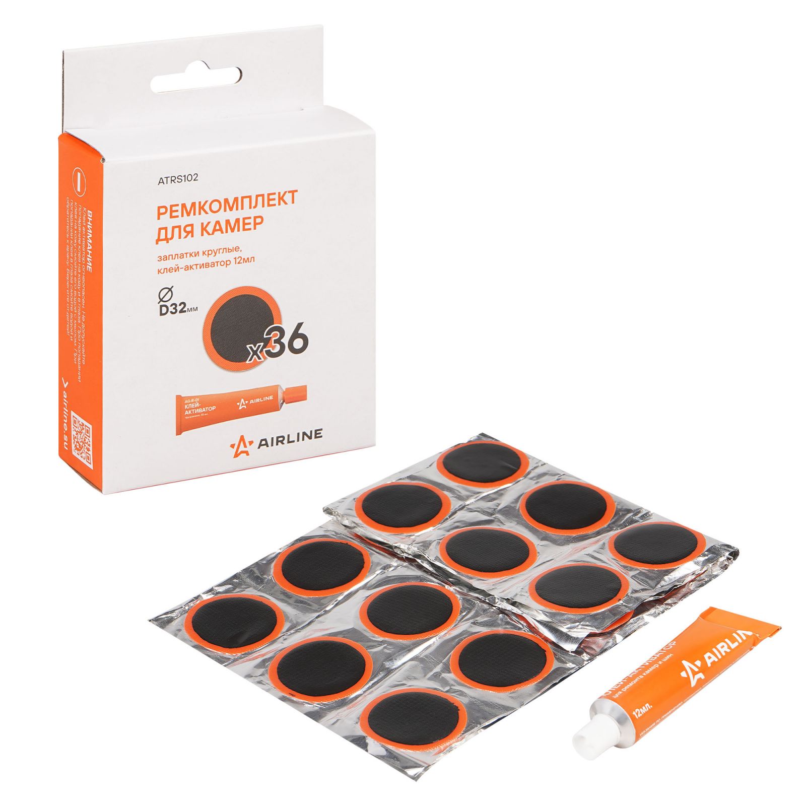 Ремкомплект для камер, заплатки круглые D32 мм - 36 шт., клей-активатор 12мл (ATRS102)