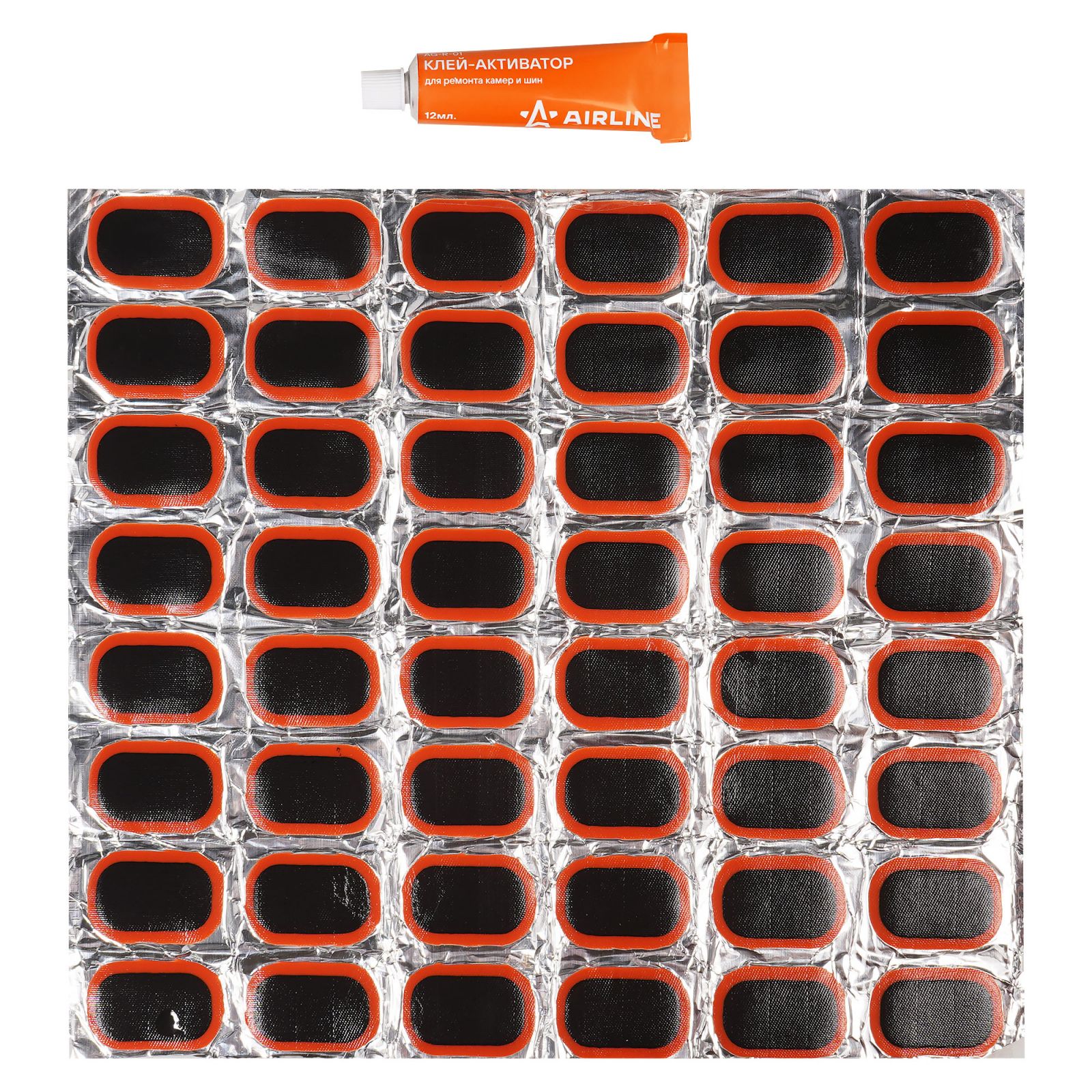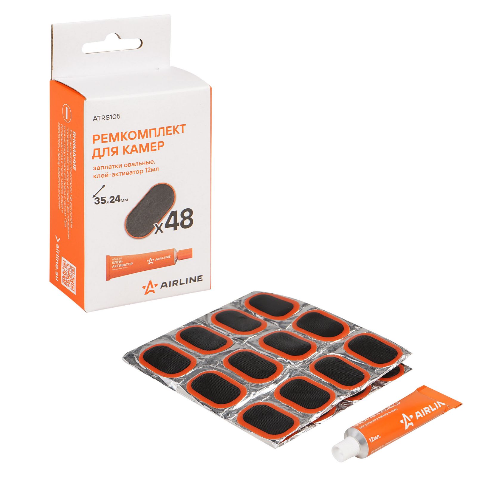 Ремкомплект для камер, заплатки овальные 35*24 мм - 48 шт., клей-активатор 12мл (ATRS105)
