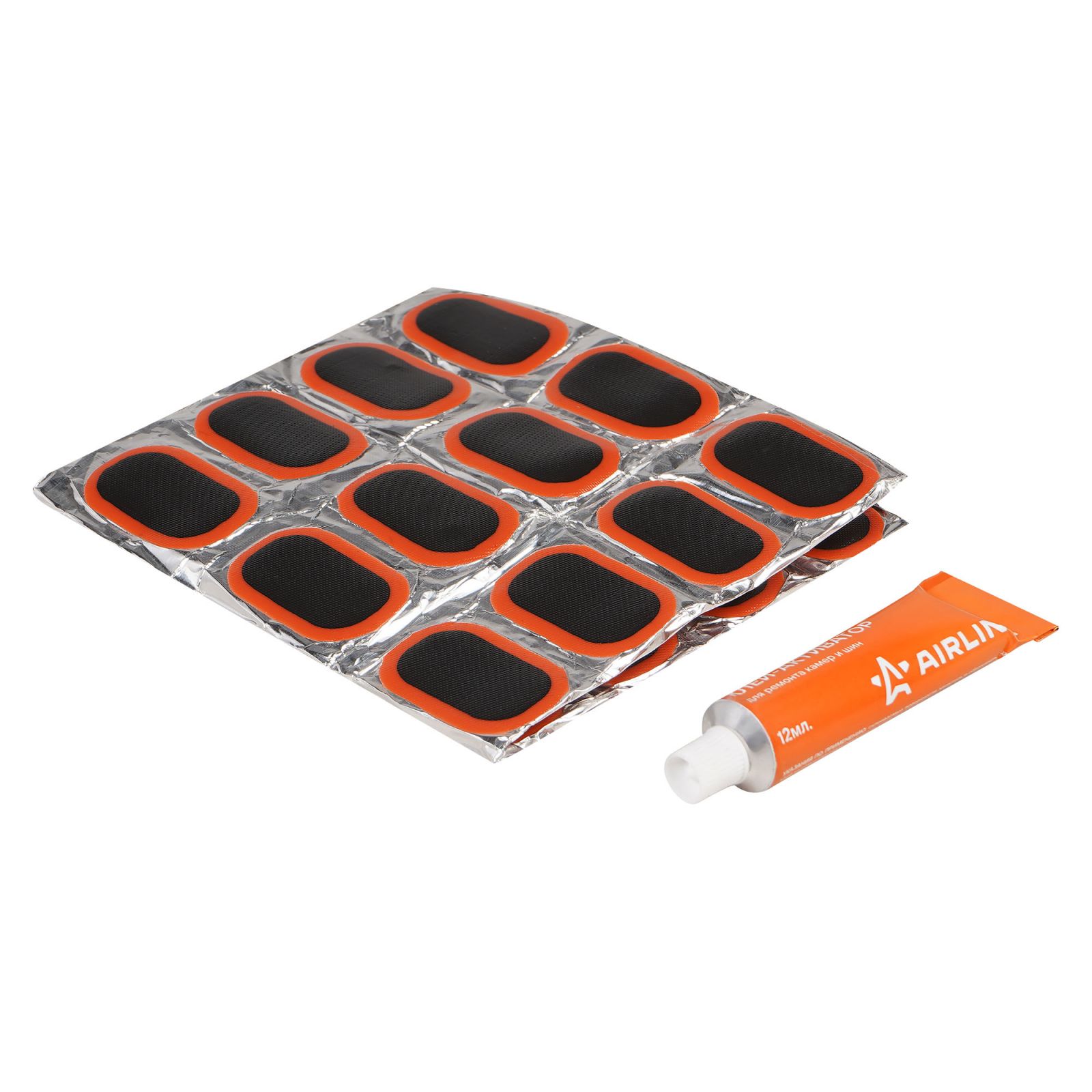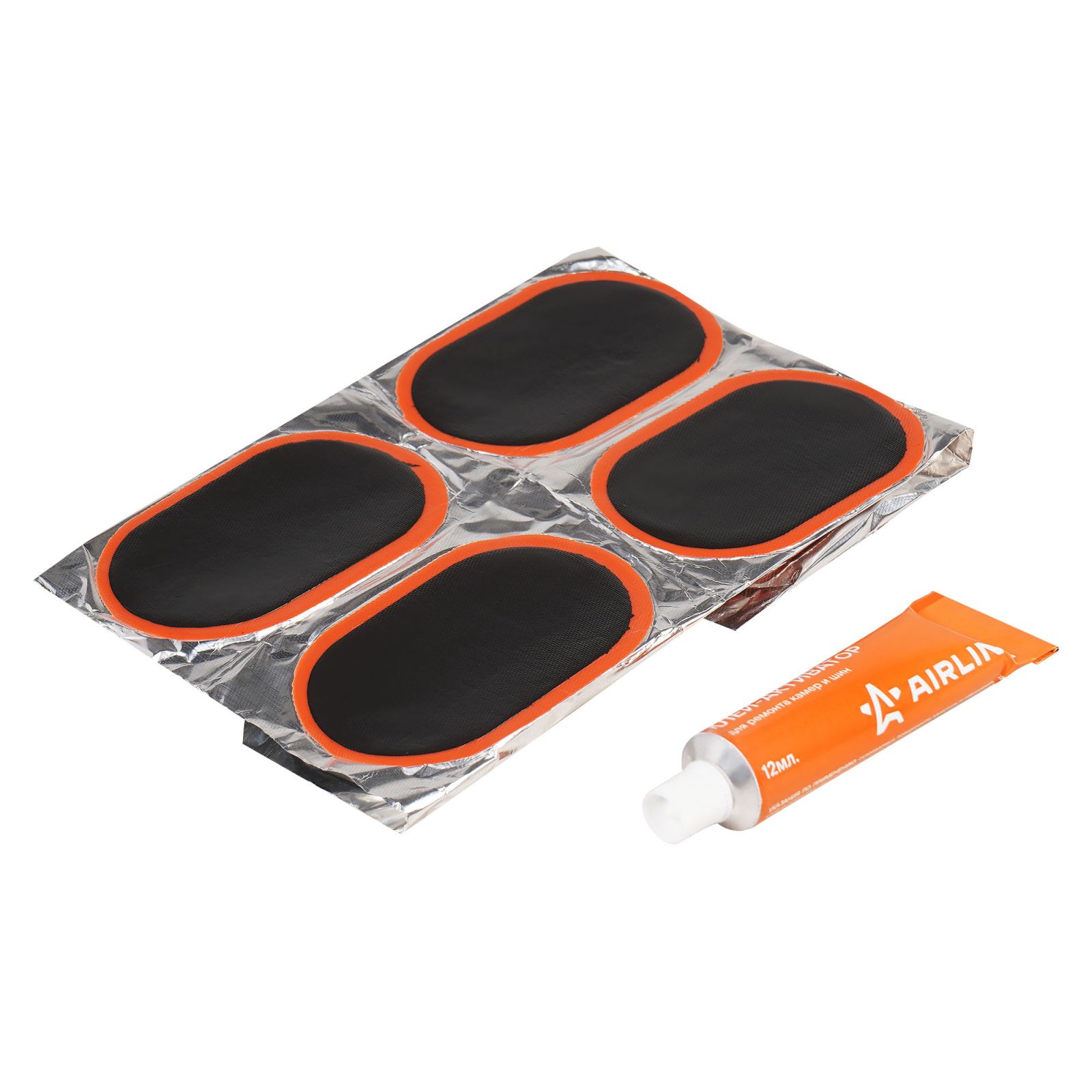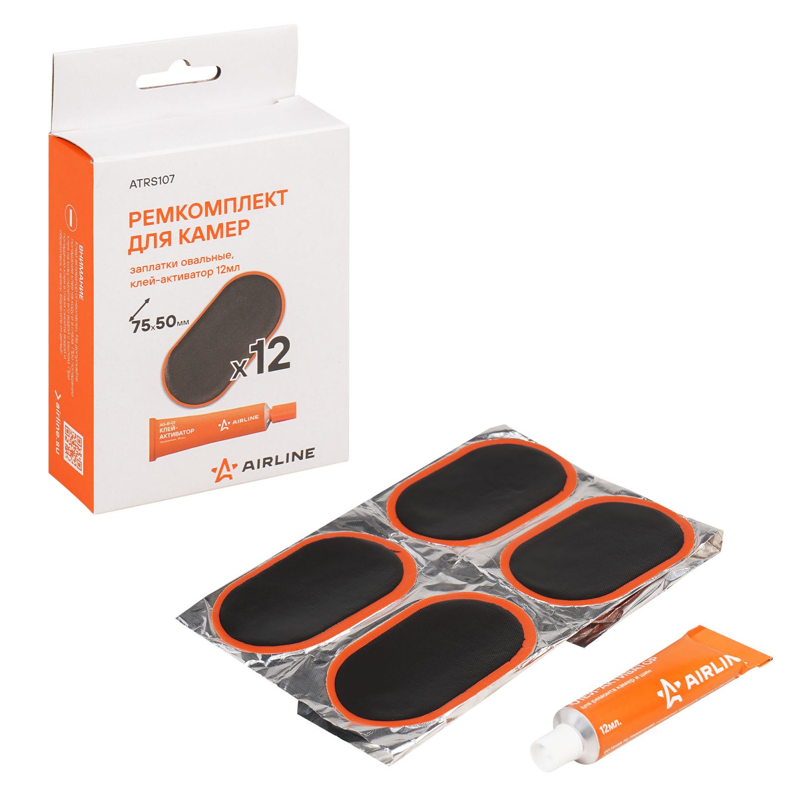 Ремкомплект для камер, заплатки овальные 75*50 мм - 12 шт., клей-активатор 12мл (ATRS107)