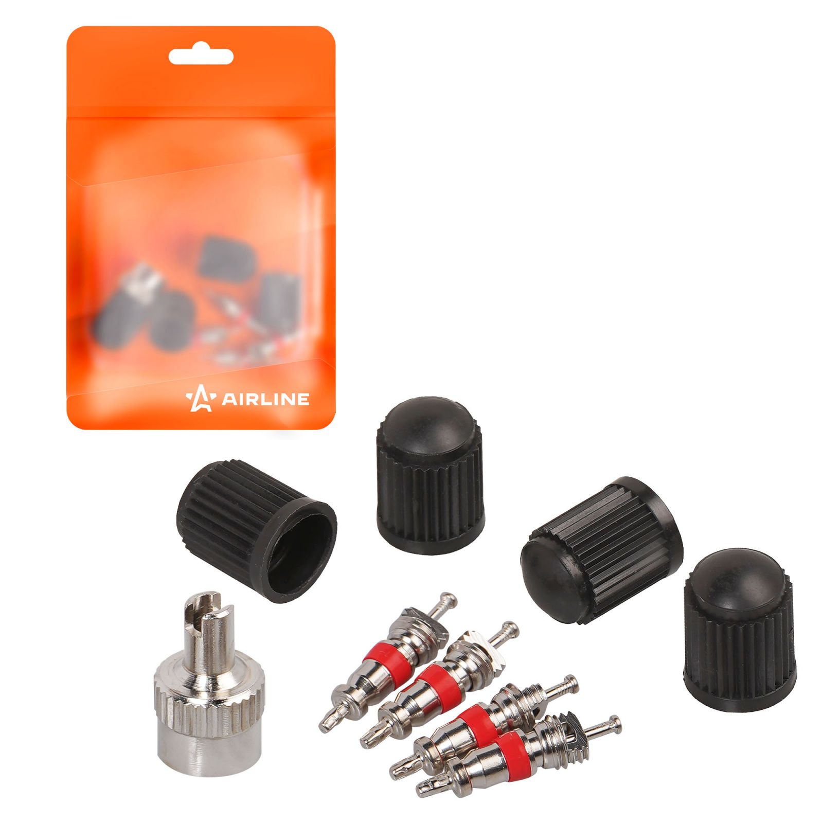 Ремкомплект для вентилей (4 золотника, 4 пласт.колп, 1 ключ) в пакете (ATRS010)