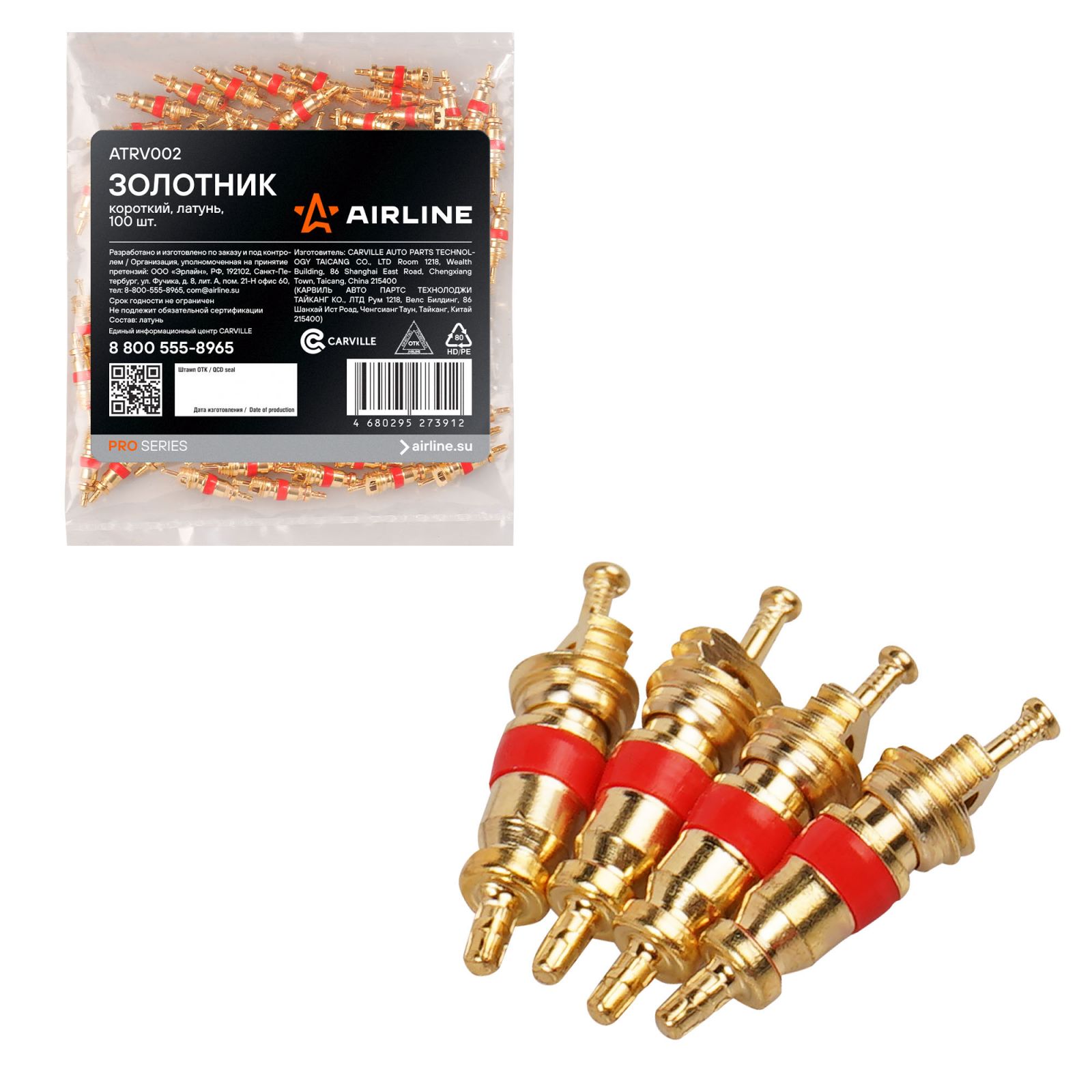 Золотник (ниппель) короткий PRO, латунь, 100 шт. (ATRV002)