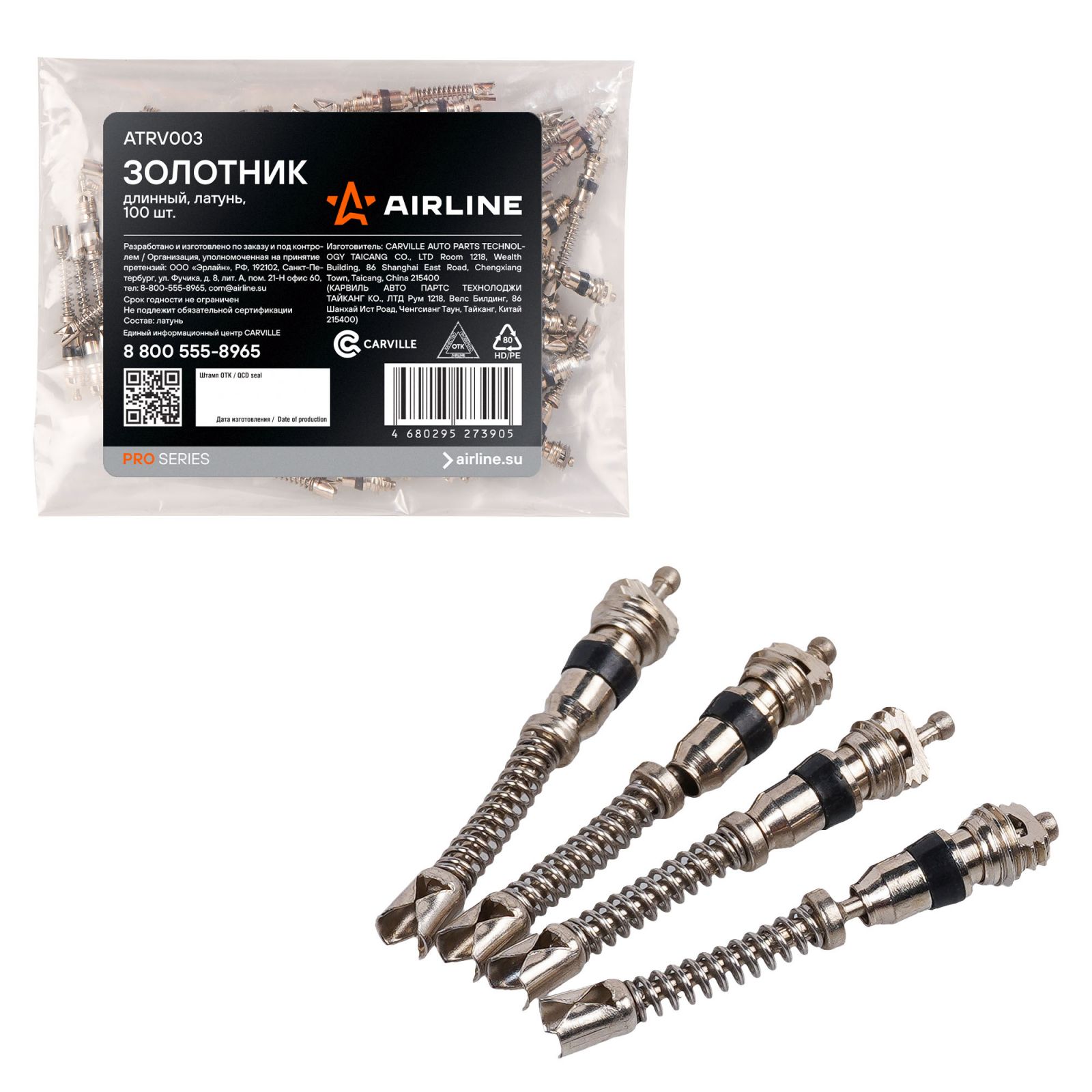 Золотник (ниппель) длинный PRO, латунь, 100 шт. (ATRV003)