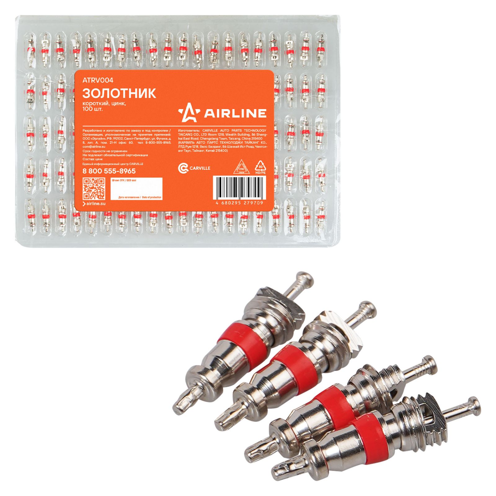 Золотник (ниппель) короткий, цинк, 100 шт. в блистере (ATRV004)