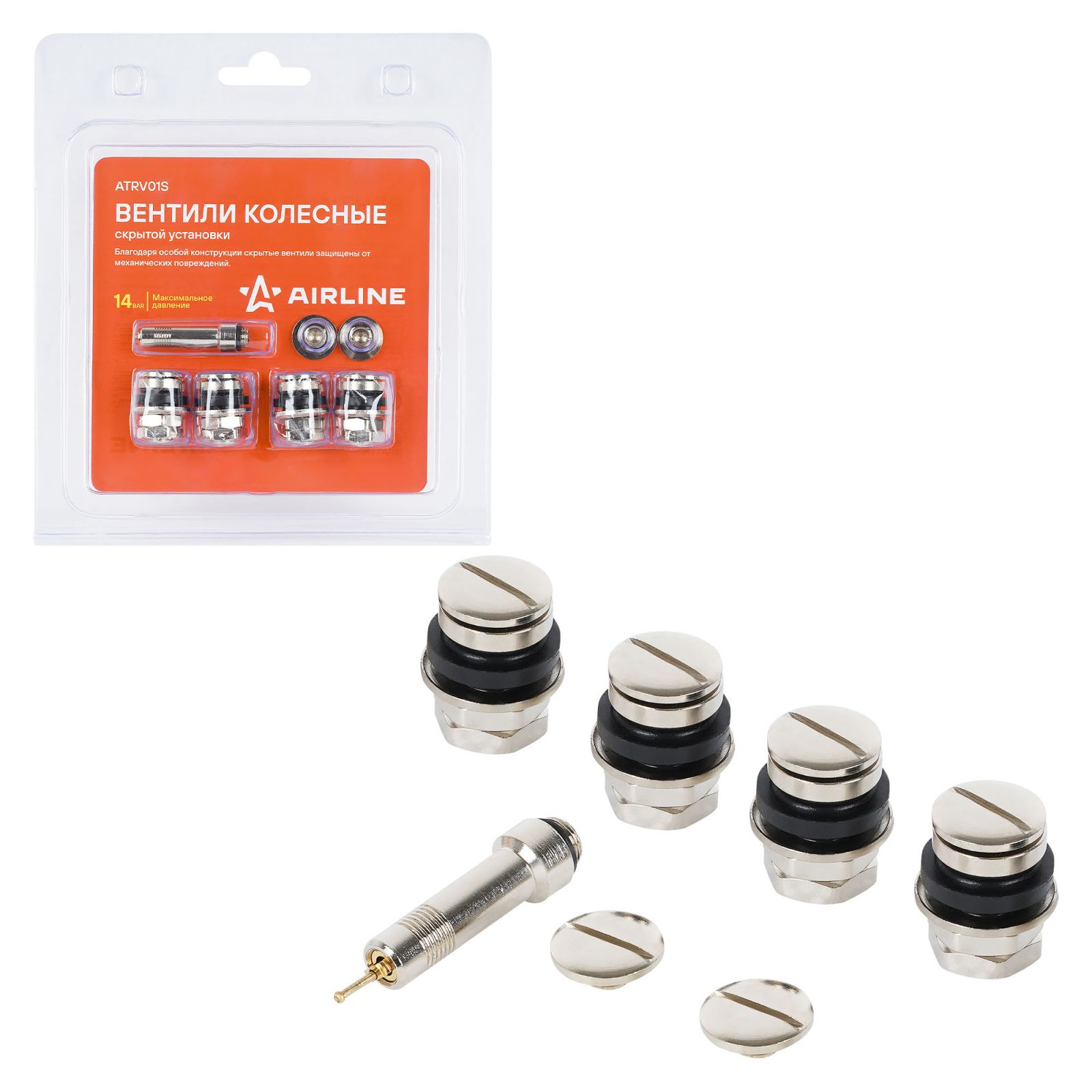 Вентили скрытые для колес (вентили 4шт., адаптер 1 шт., доп заглушки 2шт.) (ATRV01S)