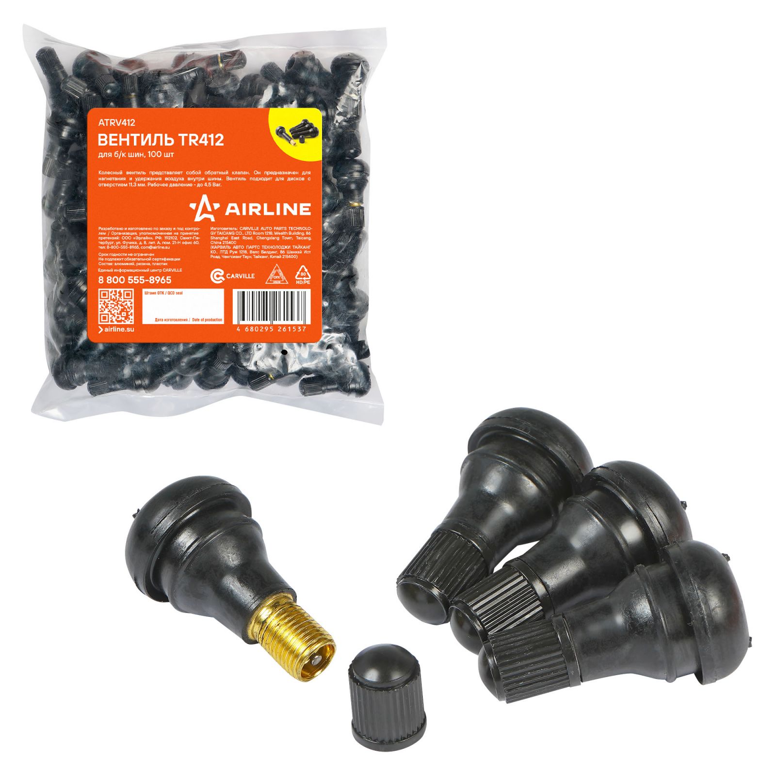 Вентиль для б/к шин TR412 PRO, EPDM резина, 4 шт. (ATRV412EPDM-01)
