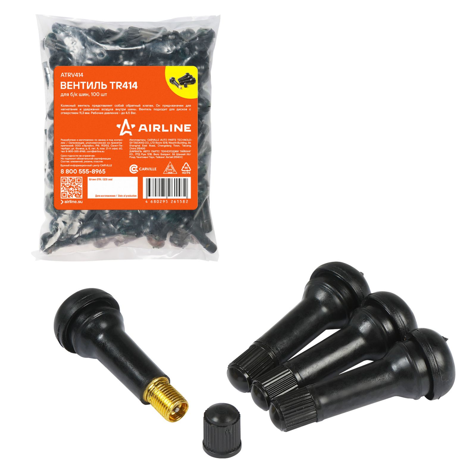 Вентиль для б/к шин TR414 PRO, EPDM резина, 4 шт. (ATRV414EPDM-01)