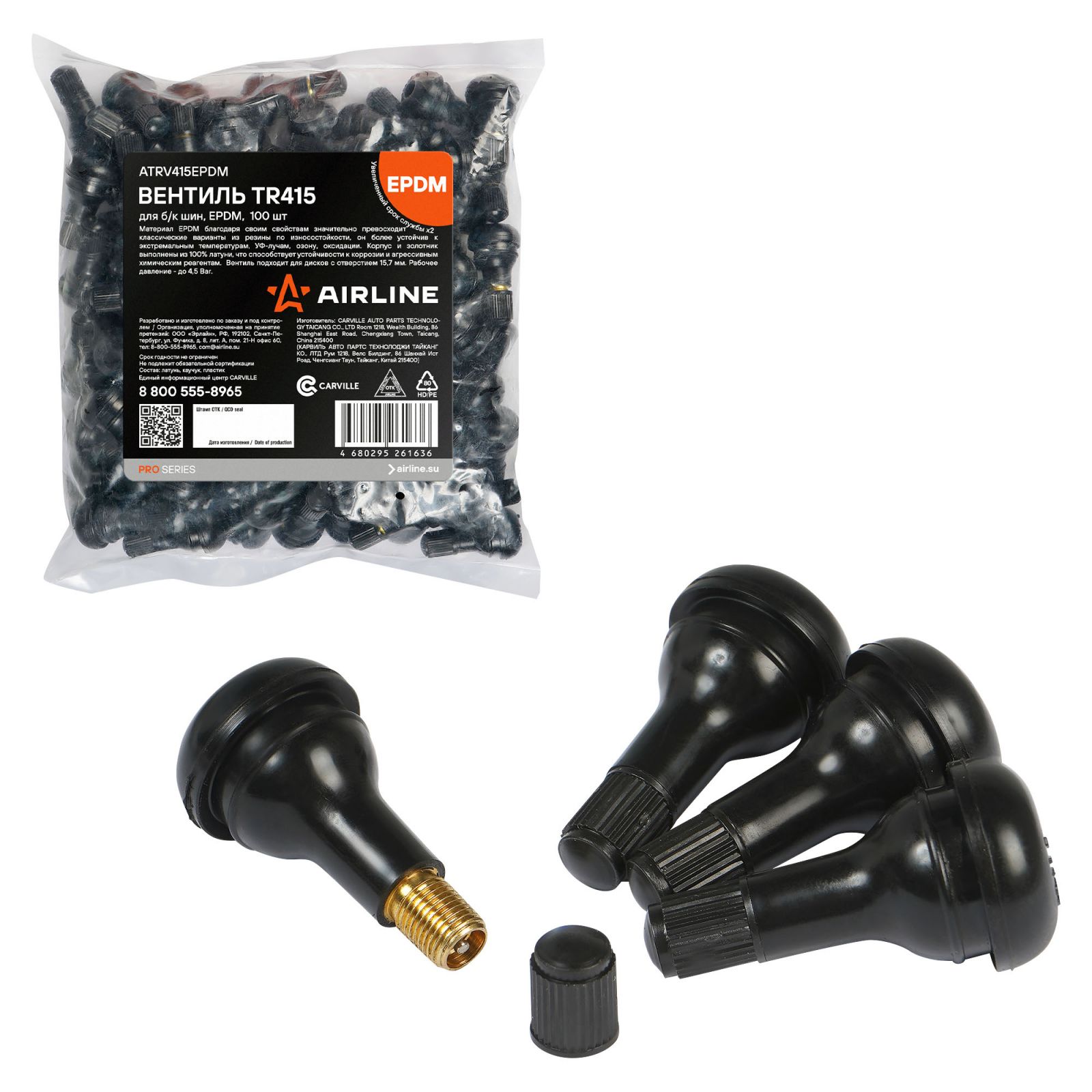 Вентиль для б/к шин TR415 PRO, EPDM резина (ATRV415EPDM)