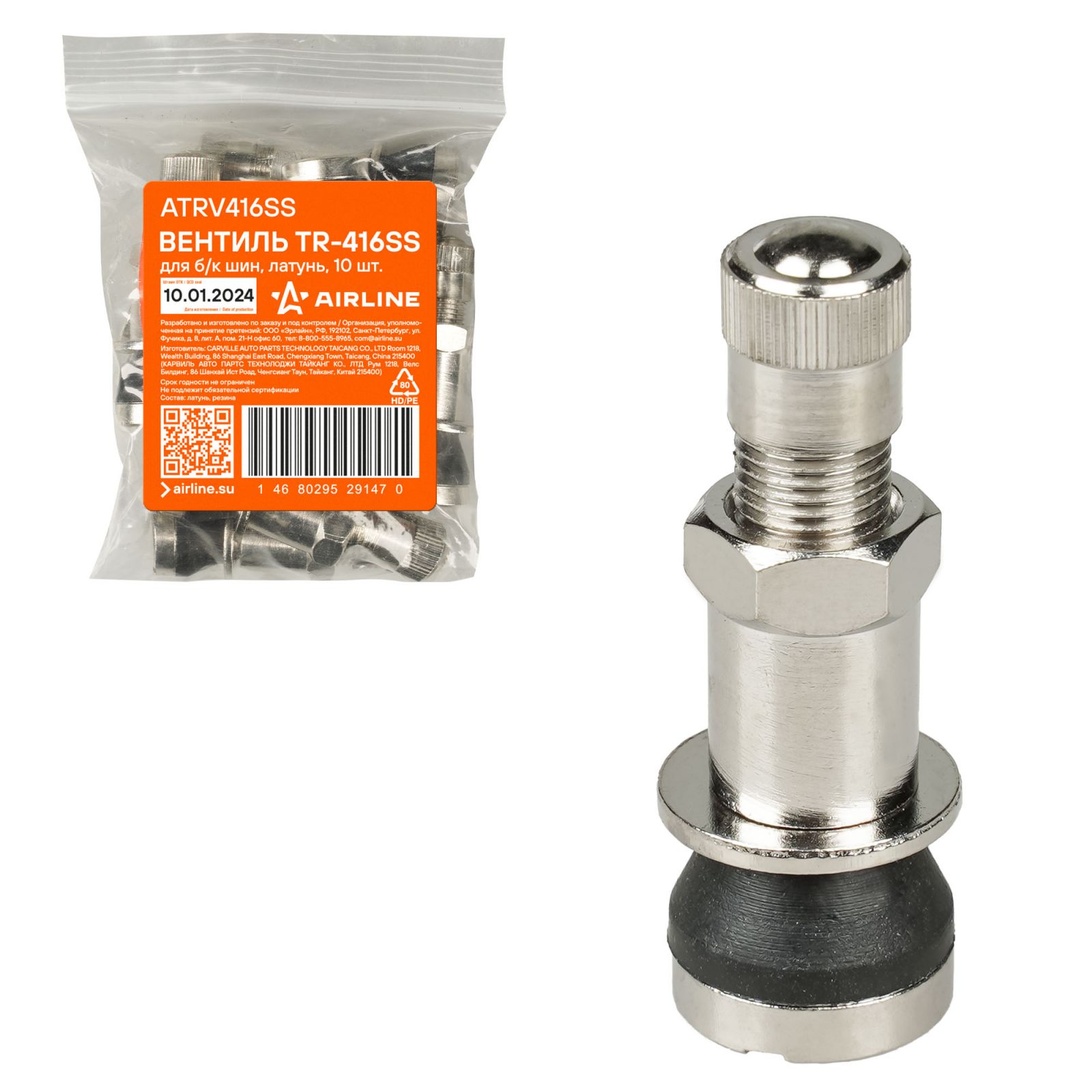 Вентиль для б/к шин TR-416SS, латунь (ATRV416SS)