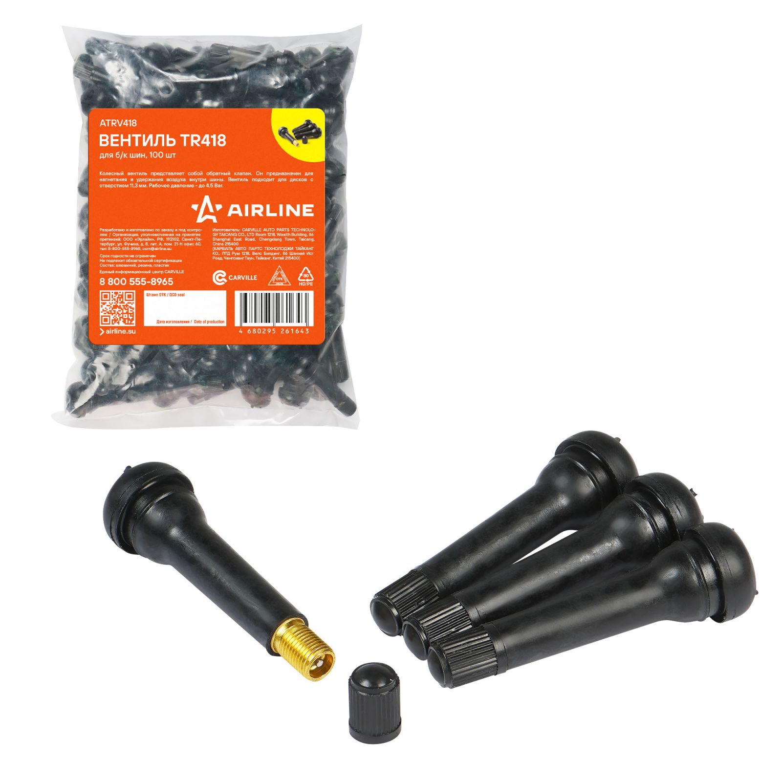 Вентиль для б/к шин TR418, 4 шт. (ATRV418-01)
