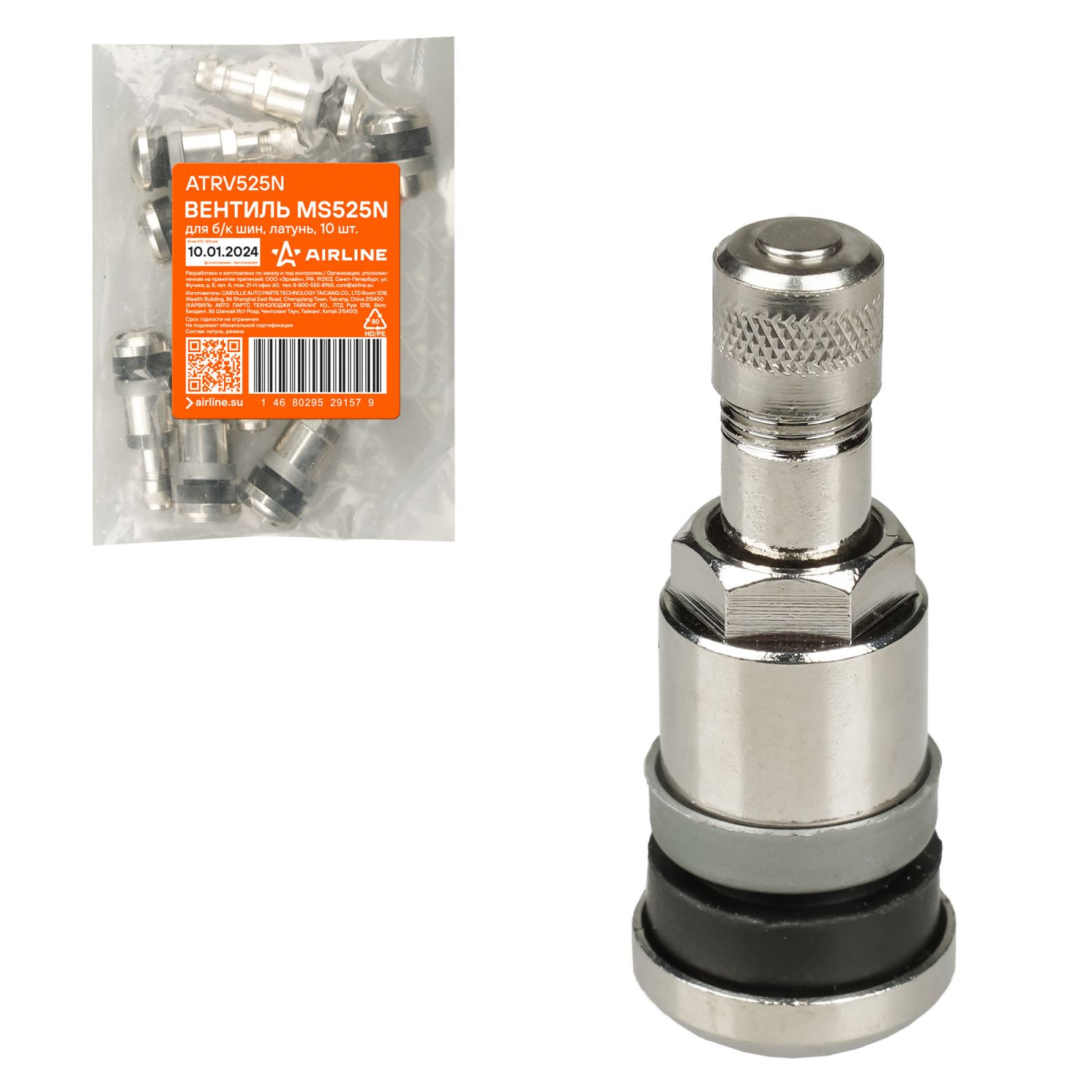 Вентиль для б/к шин MS525N, латунь, 4 шт (ATRV525N-01)
