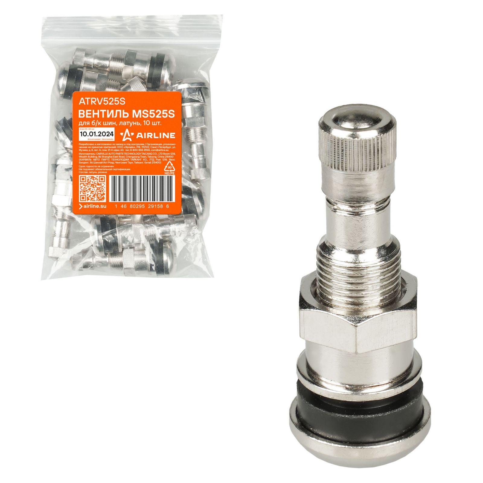 Вентиль для б/к шин MS525S, латунь (ATRV525S)