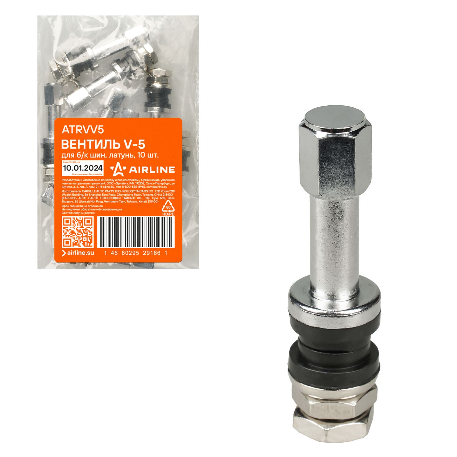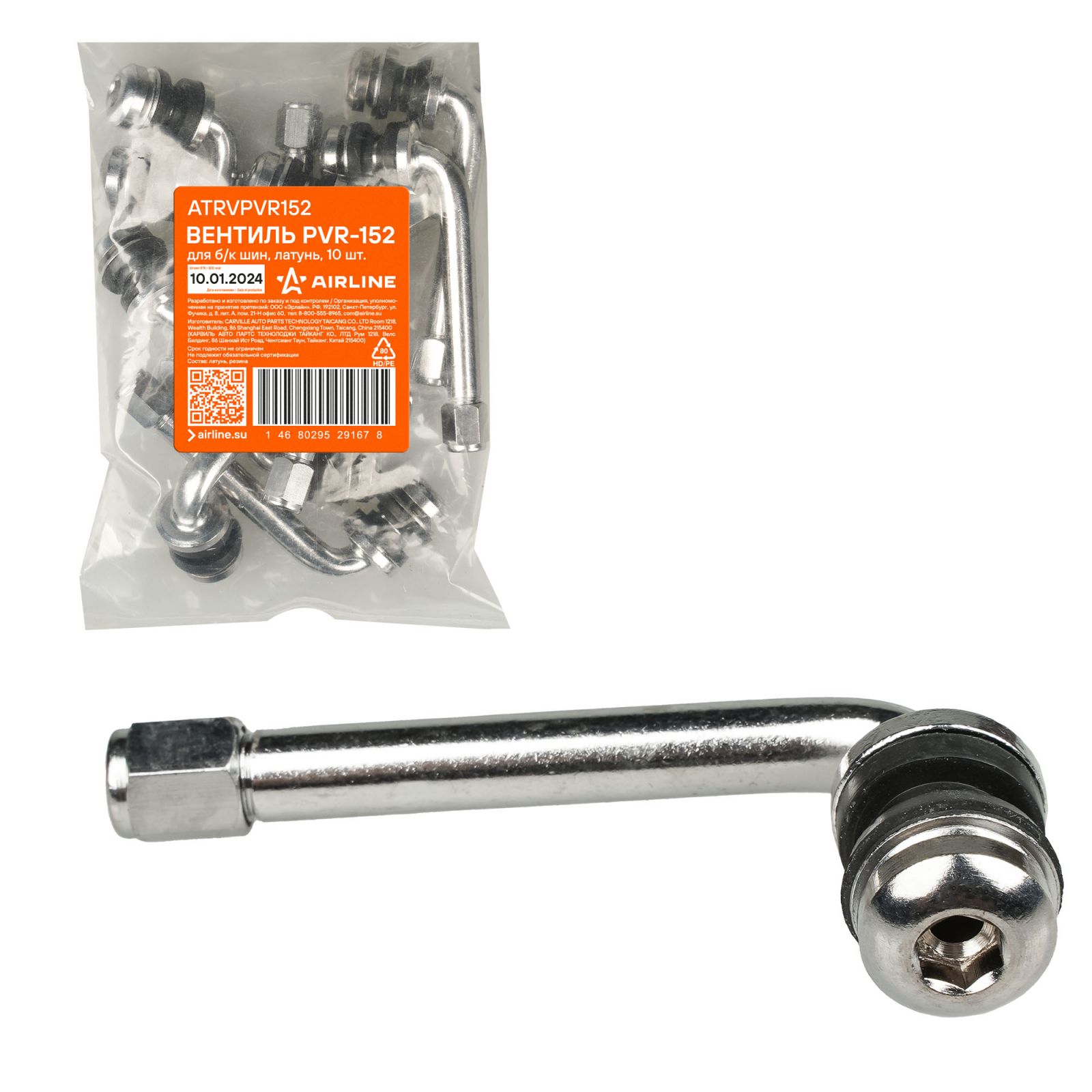 Вентиль для б/к шин PVR-152, латунь (ATRVPVR152)