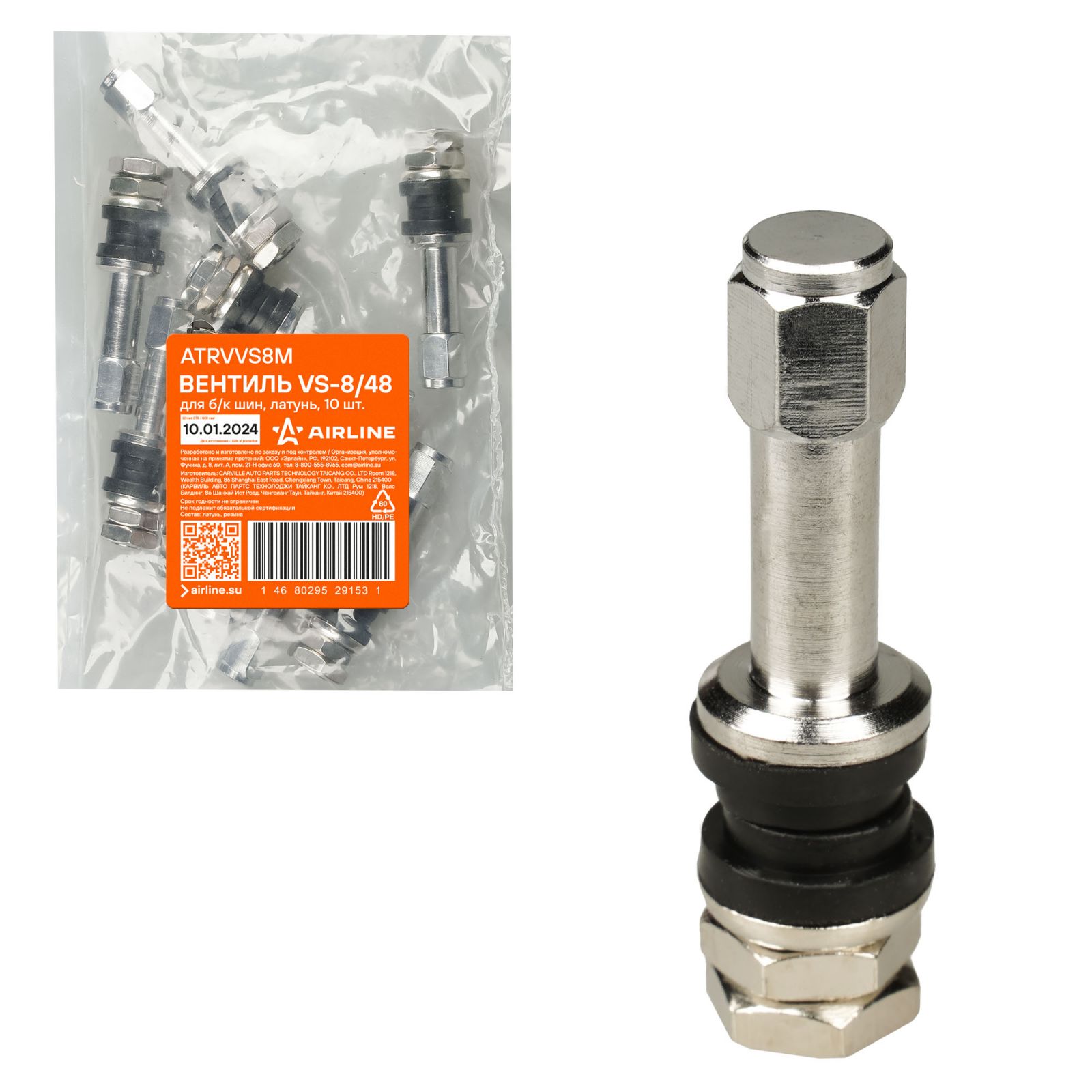 Вентиль для б/к шин VS-8/48, латунь (ATRVVS8M)
