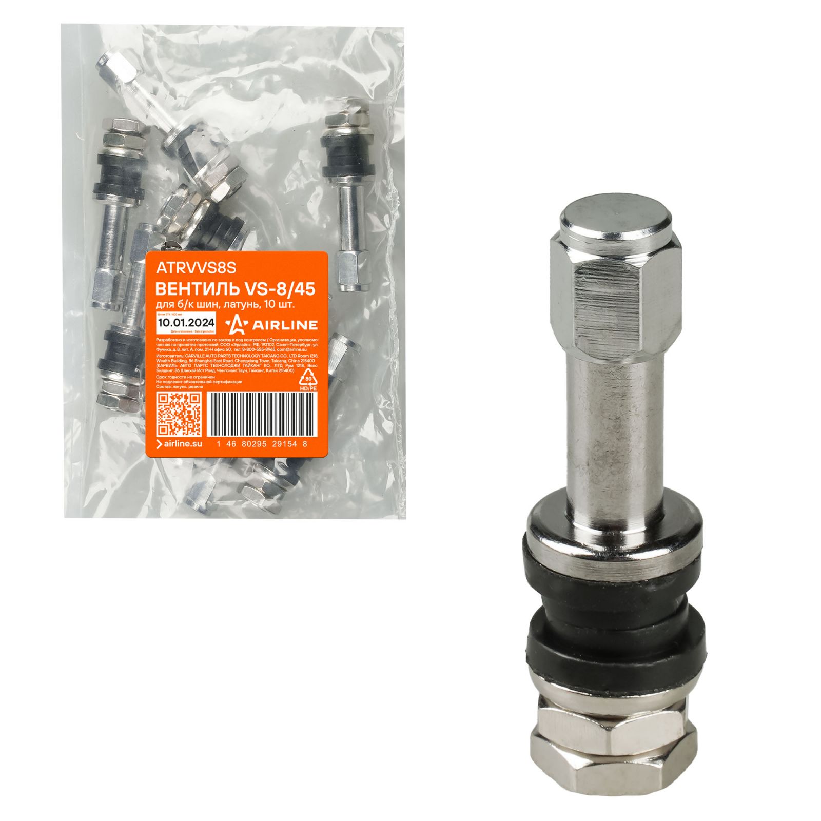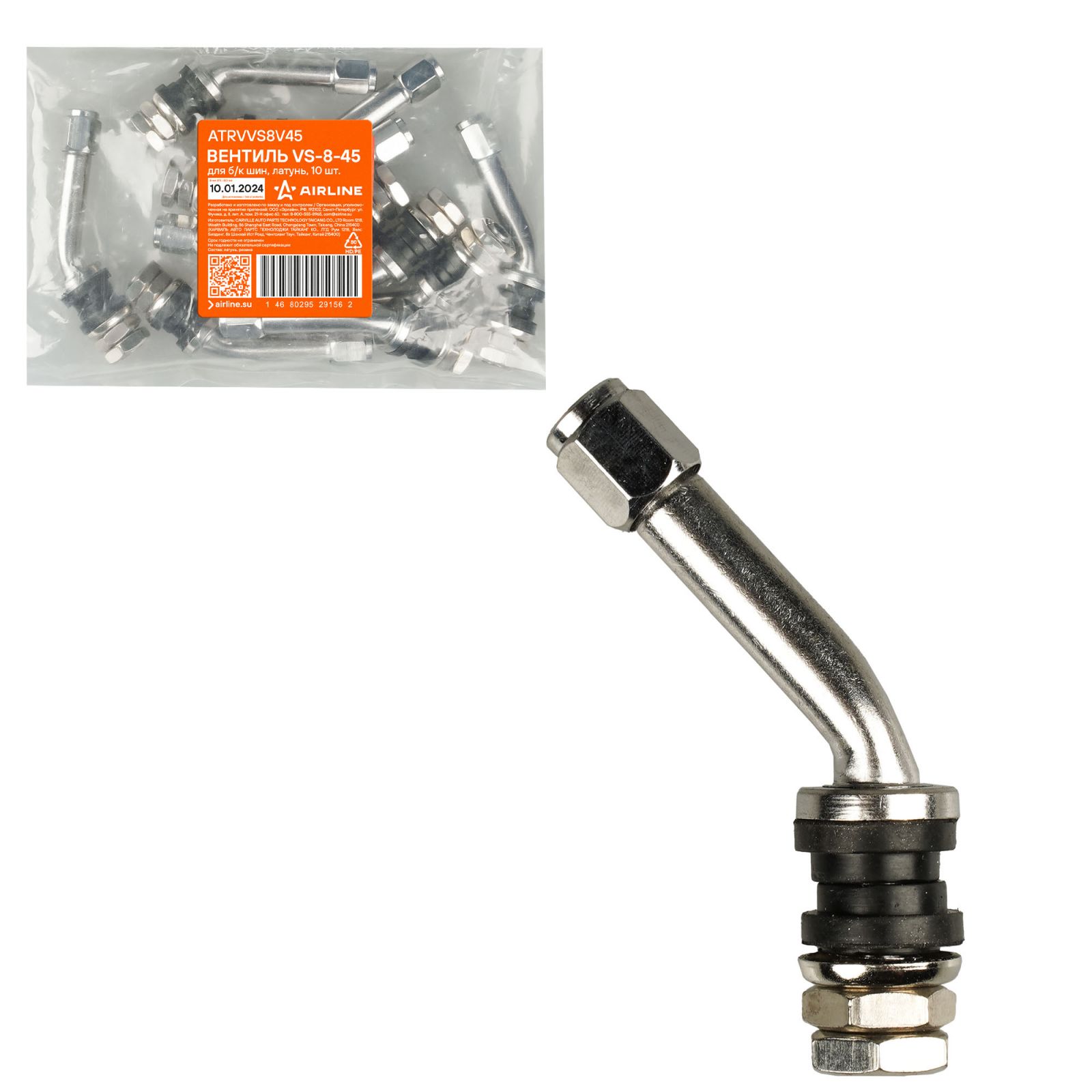Вентиль для б/к шин VS-8-45, латунь (ATRVVS8V45)