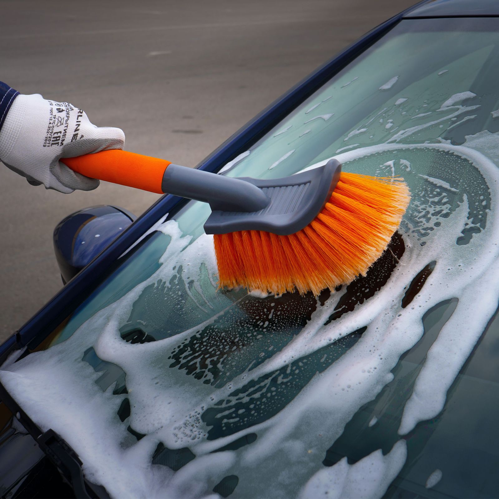 Щетка для мытья с мягкой распушенной щетиной, прорезиненные ручка и кант (52 см) (ABIN006)