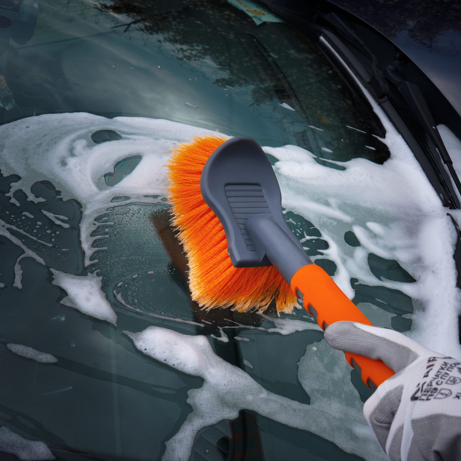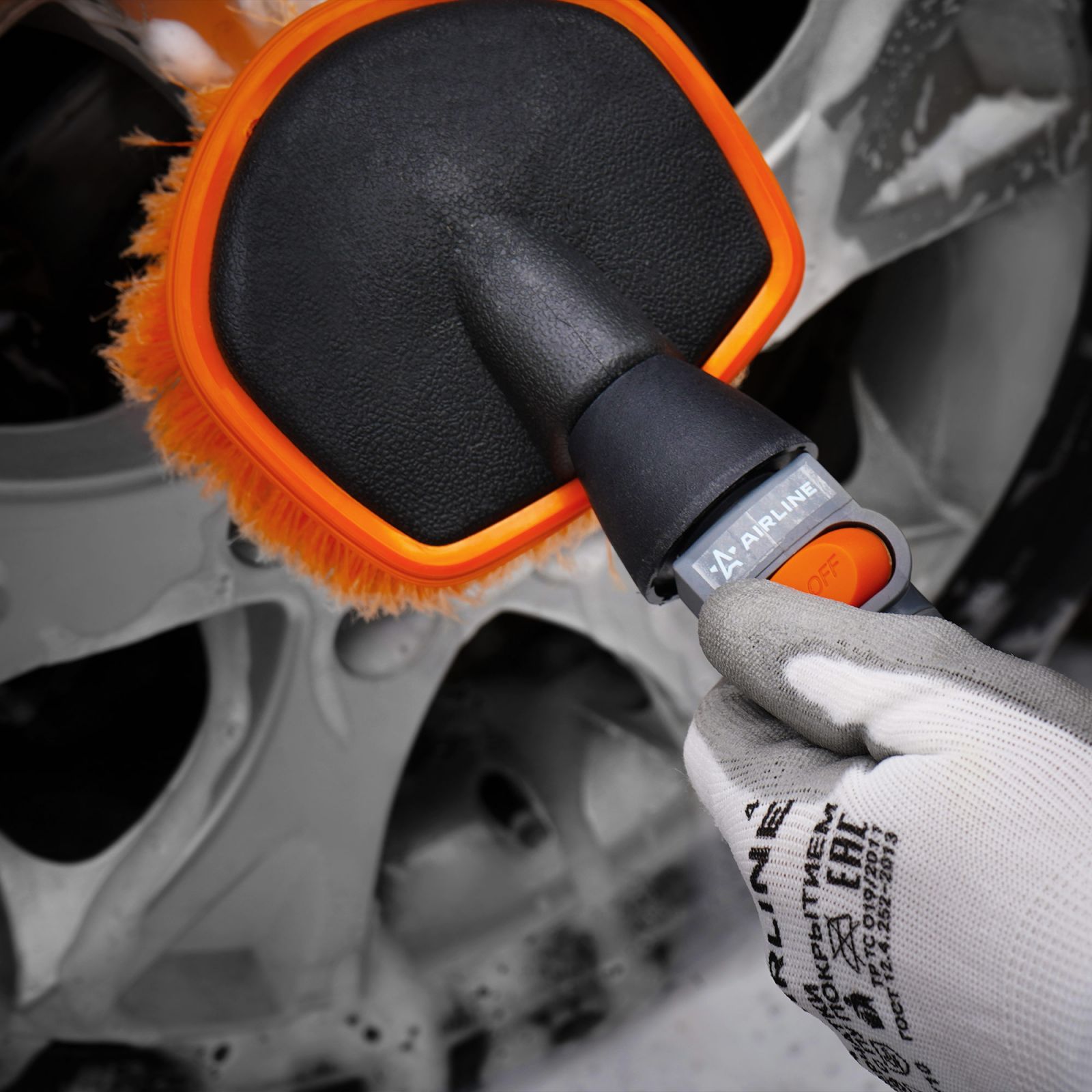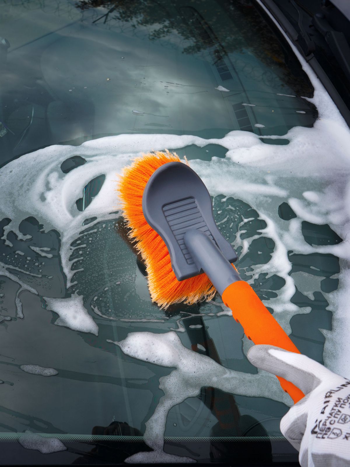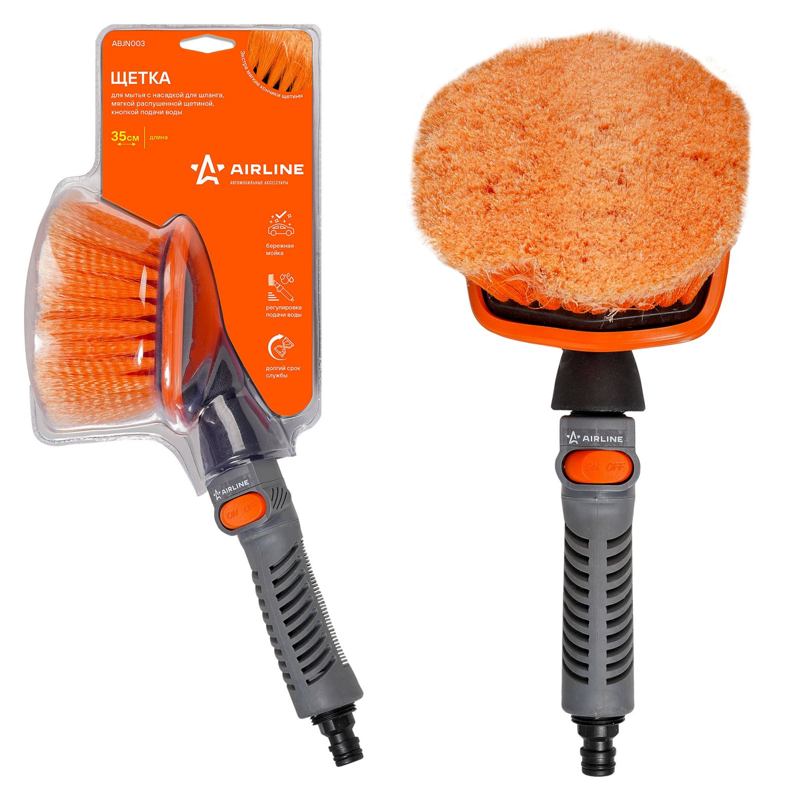 Щетка для мытья с насадкой для шланга, мягкой распушенн. щетиной, кнопкой подачи воды (35 см) (ABJN003)