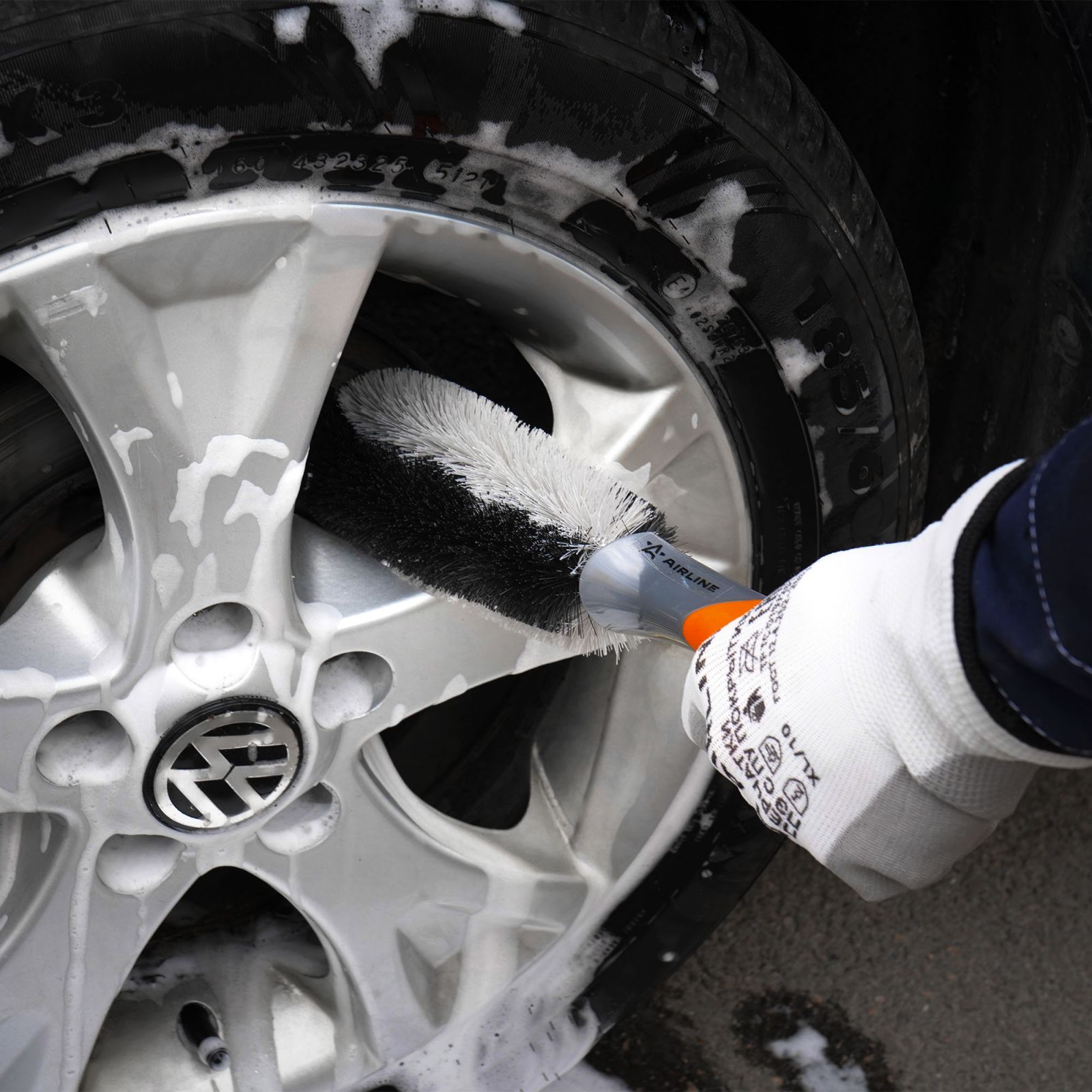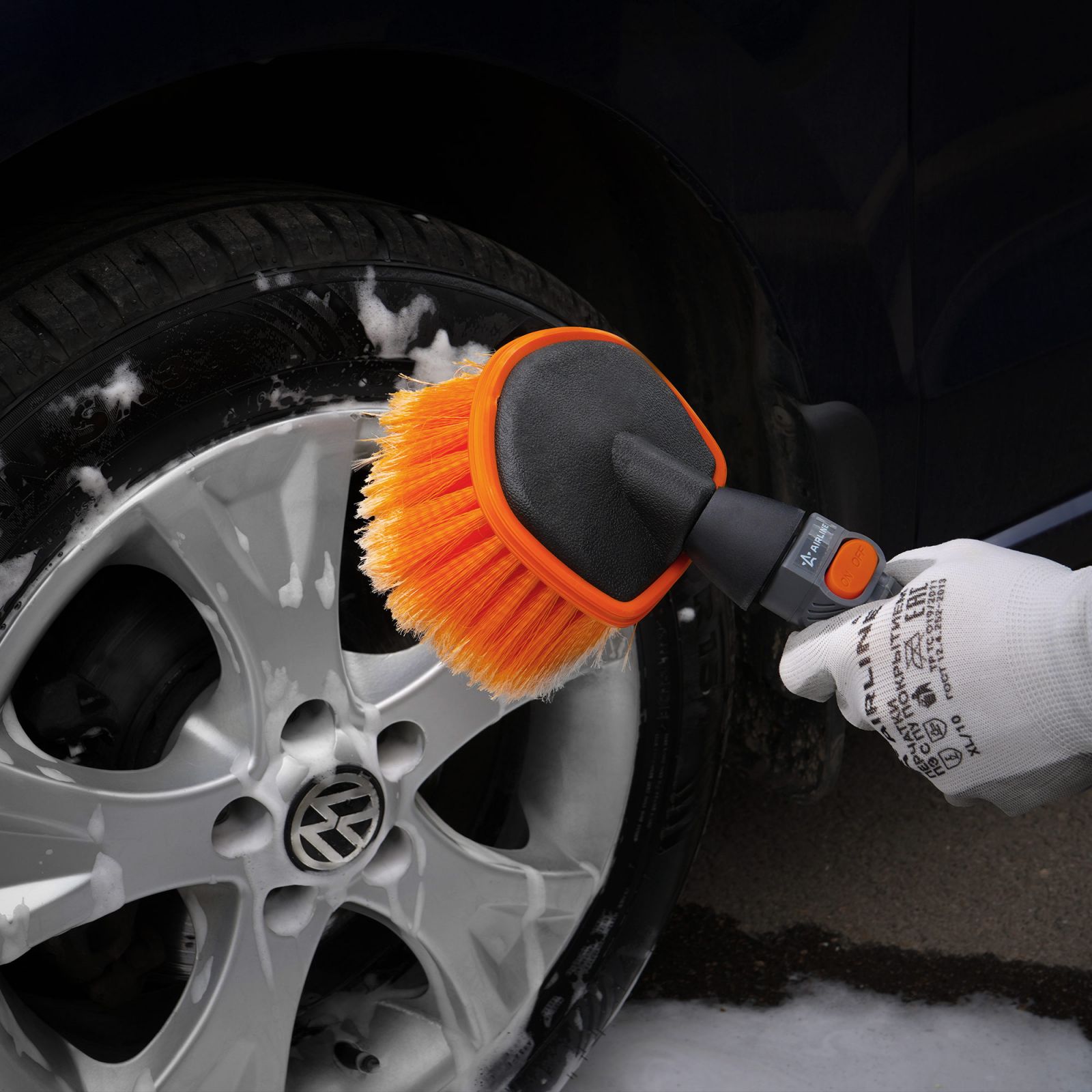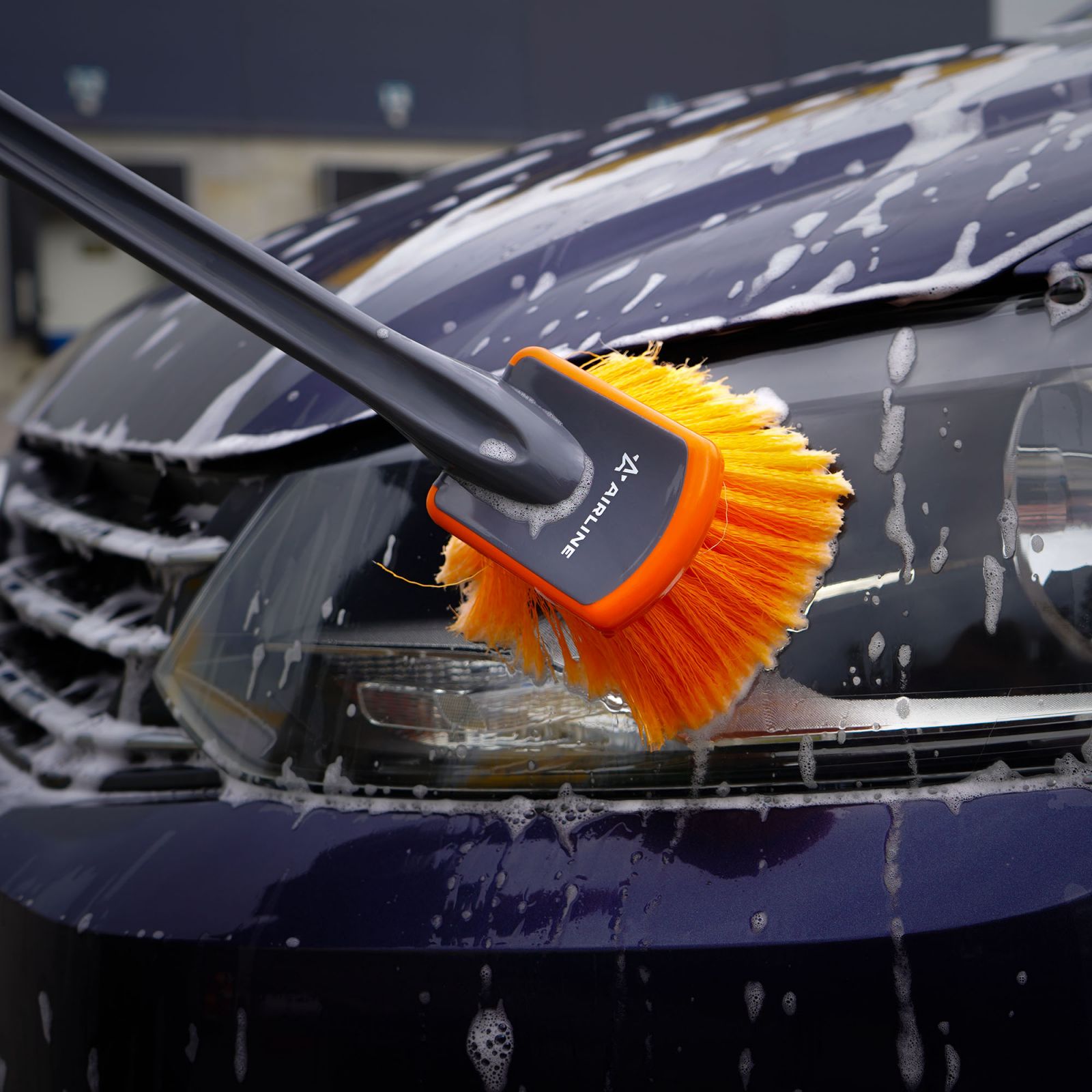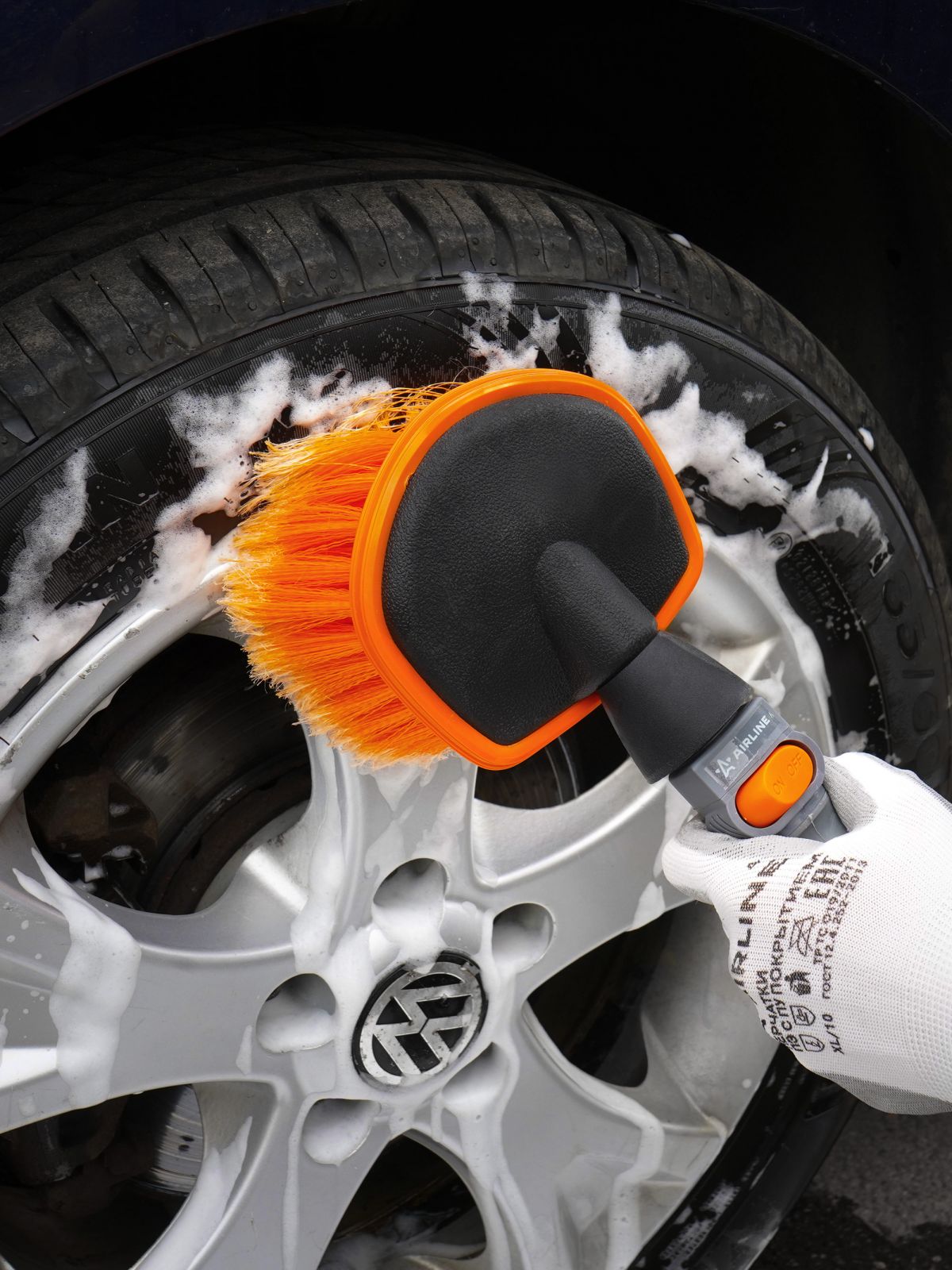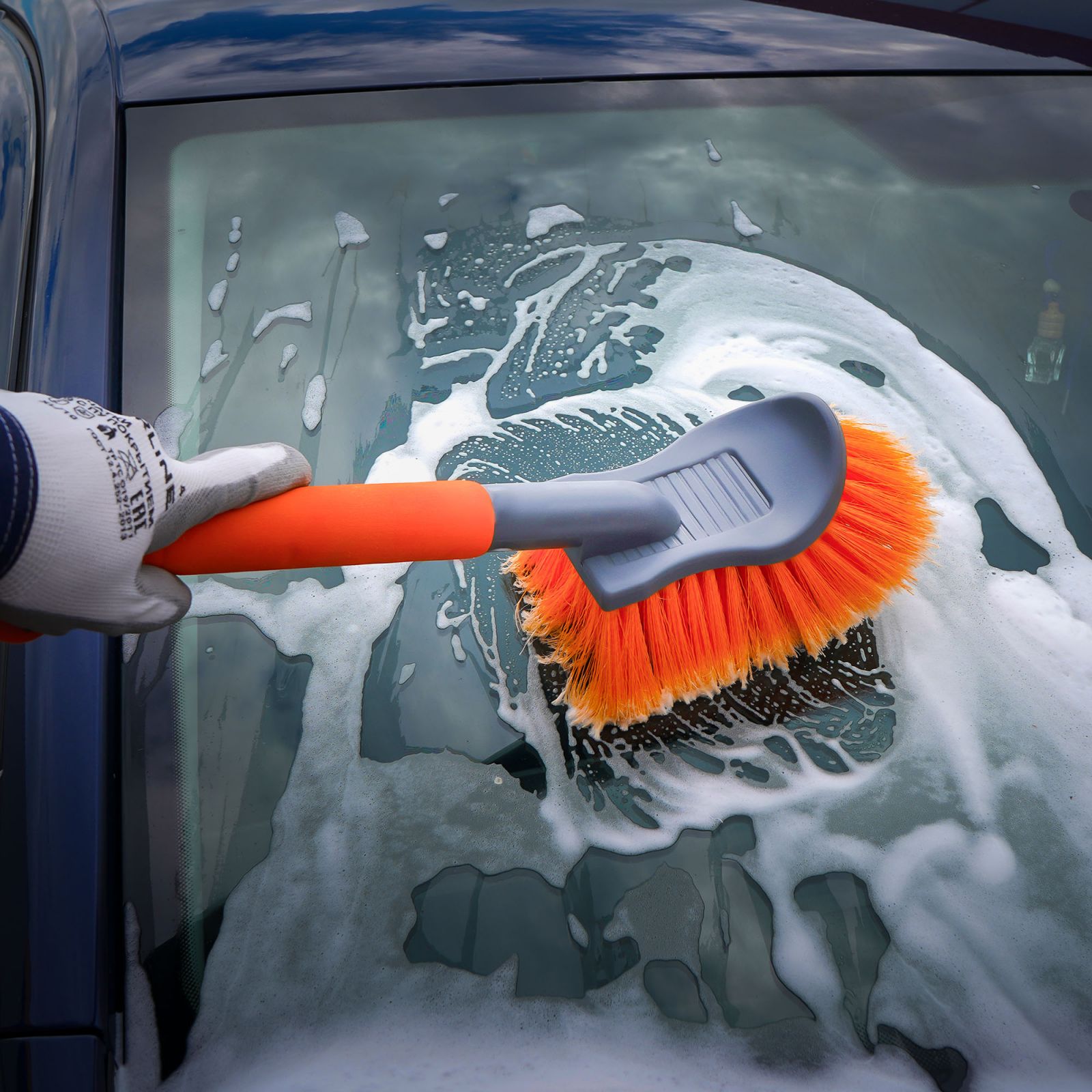 Щетка для мытья с насадкой для шланга, мягкой распушенн. щетиной, кнопкой подачи воды (35 см) (ABJN003)
