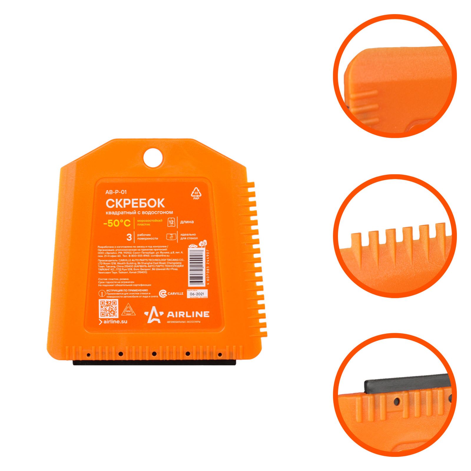 Скребок с водосгоном и эргономичной рукояткой (21 см) (AB-P-04)