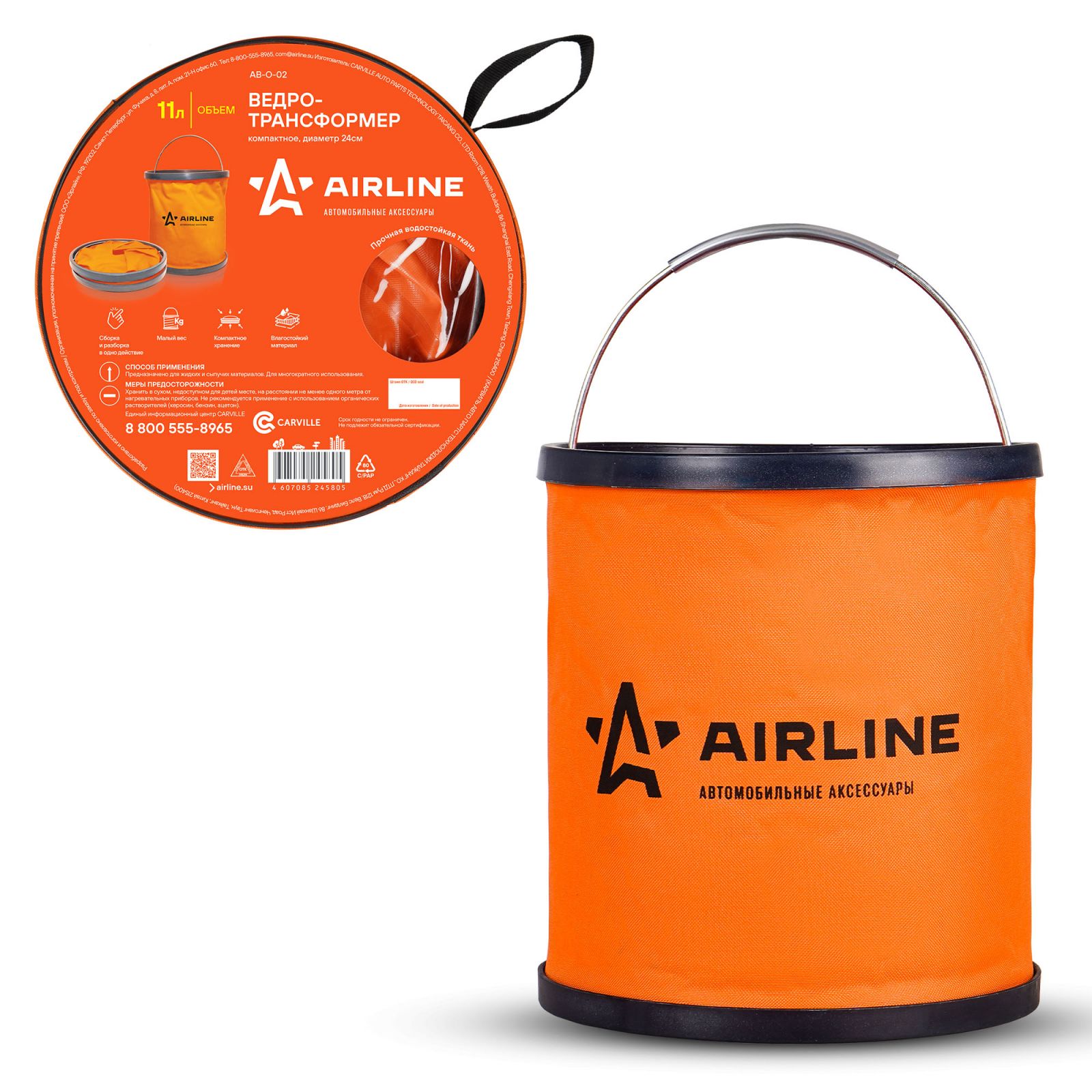 Ведро-трансформер компактное оранжевое 11л (AB-O-02)