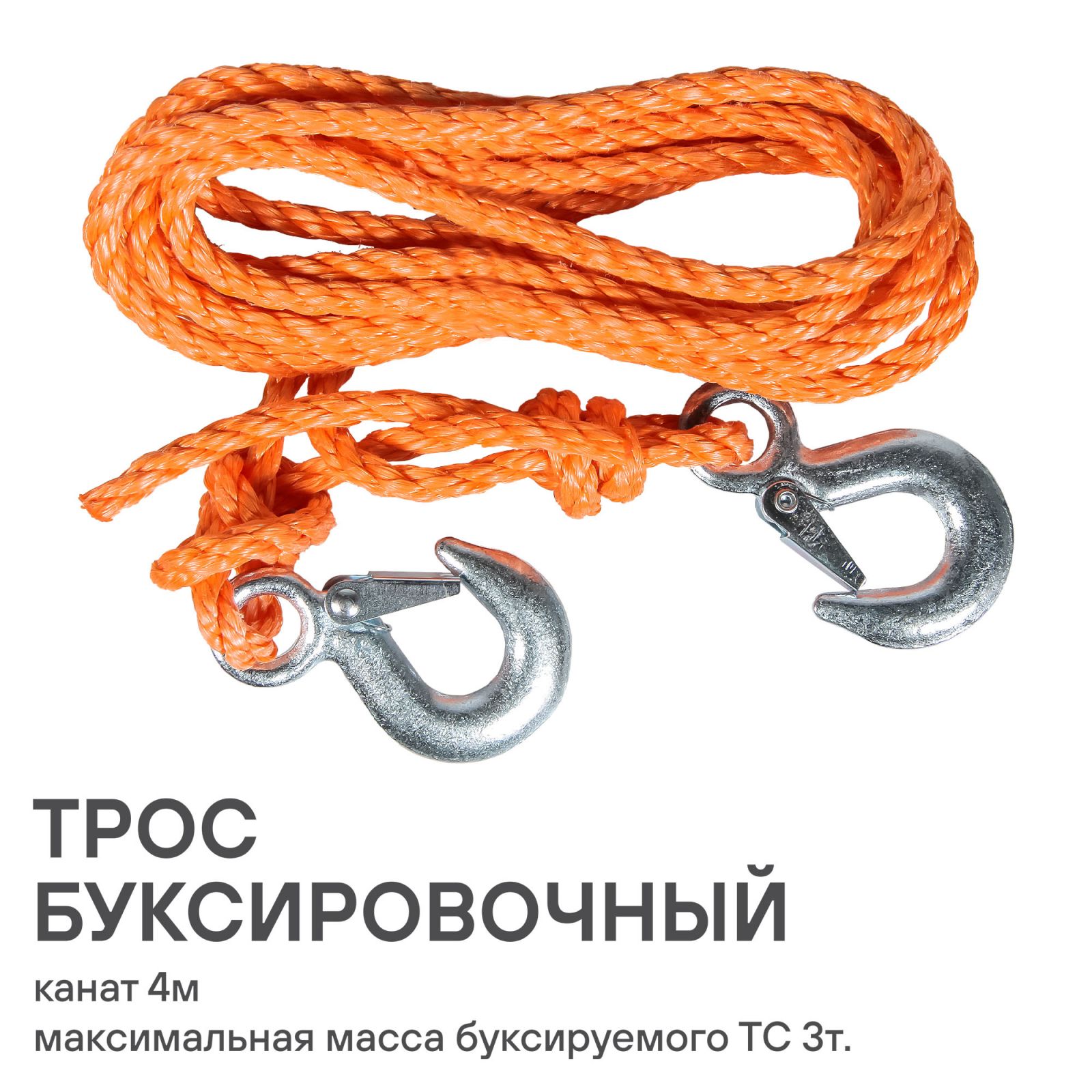 Трос буксировочный канат 3 т, 4 м, 2 крюка (ACA-01)