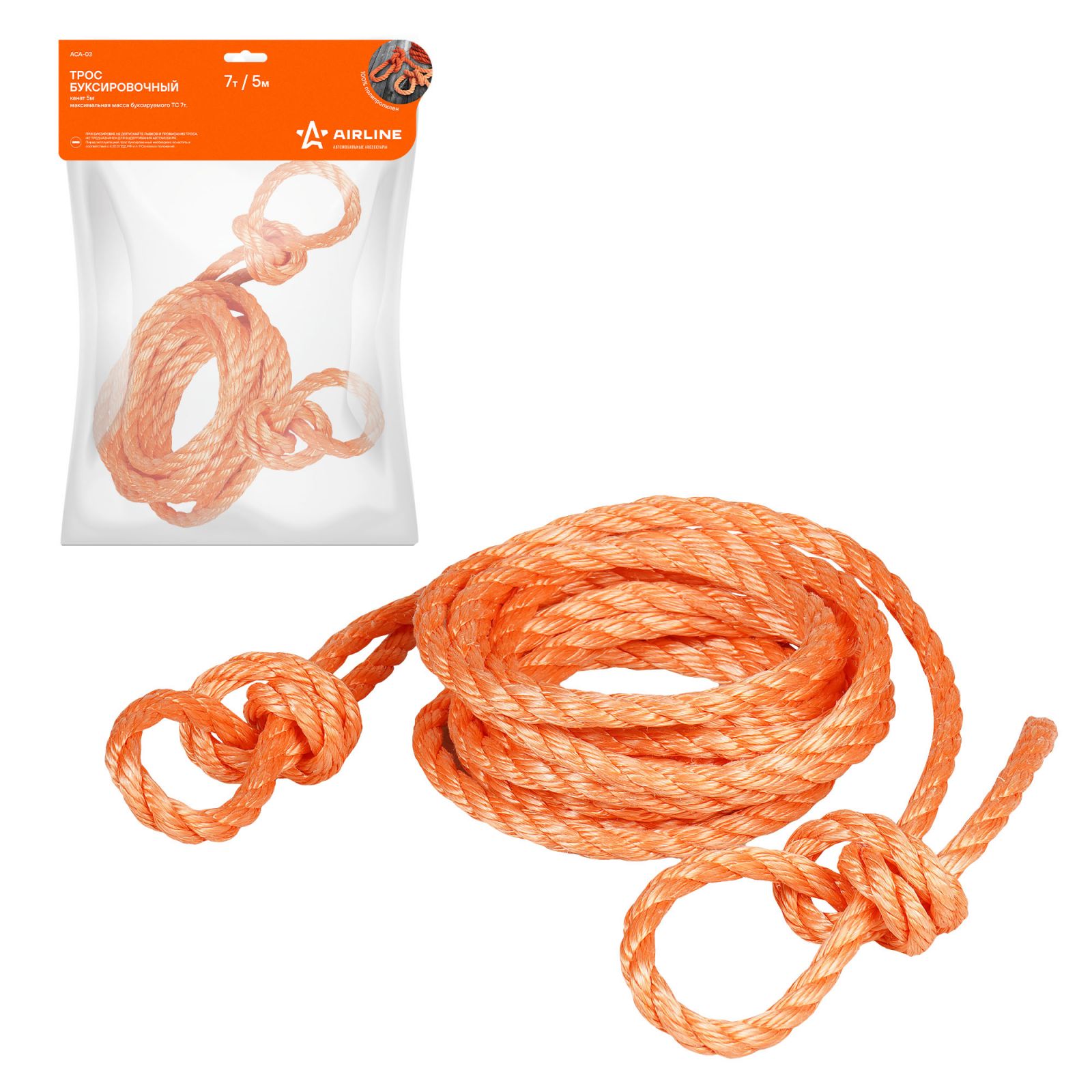 Трос буксировочный канат 7 т, 5 м, без крюков (ACA-03)