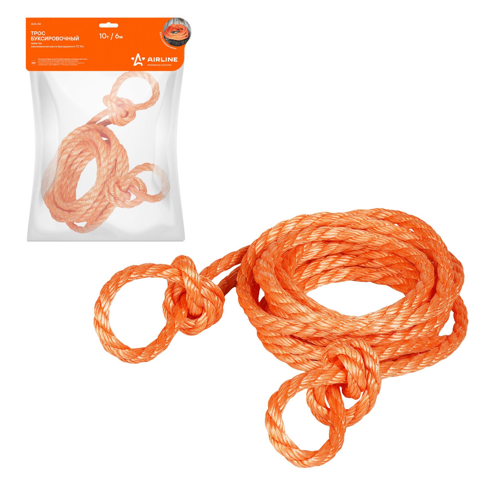Трос буксировочный канат 10 т, 6 м, без крюков (ACA-04)